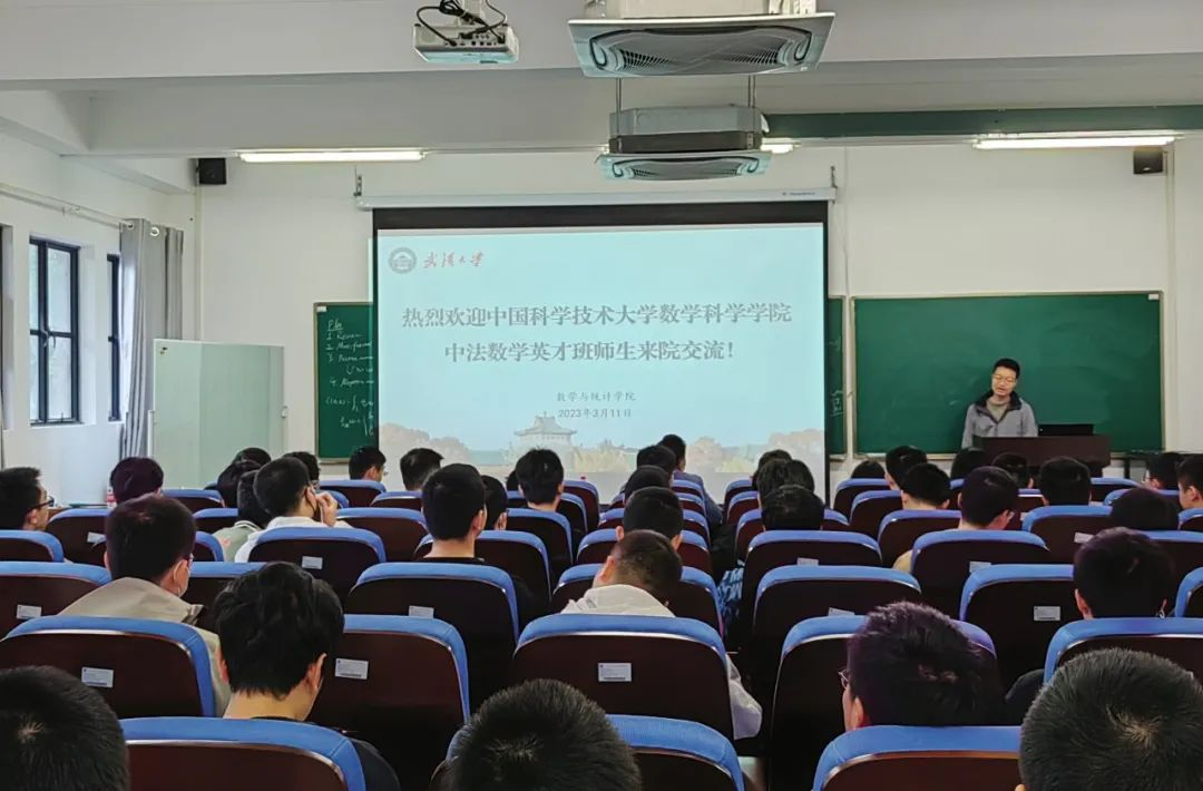 学生带来了题为《数论中的局部与整体》的学术报告。翌日上午,两校学生相聚在国家天元数学(中部)中心报告厅进行学习与学术交流。梁永祺先简要介绍了中国科学技术大学数学基础学科人才培养模式和特点。他表示,本次交流活动是一个加强双方了解、深化双方合作的重要契机。他希望通过此次活动能够拓展两校基础数学人才培养合作的新途径。