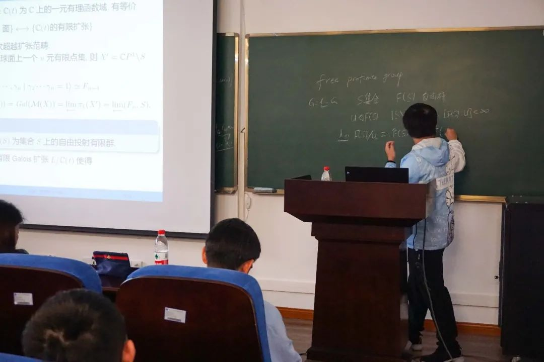活动的主体是两校学生分别做学术报告。中科大2020级中法数学英才班学生林斌做了题为《Galois理论与基本群》报告。报告中,他对Galois理论与覆叠理论进行了比较,以黎曼面为例简述它们在代数曲线上的统一,并进一步简介概形上的平展基本群理论。