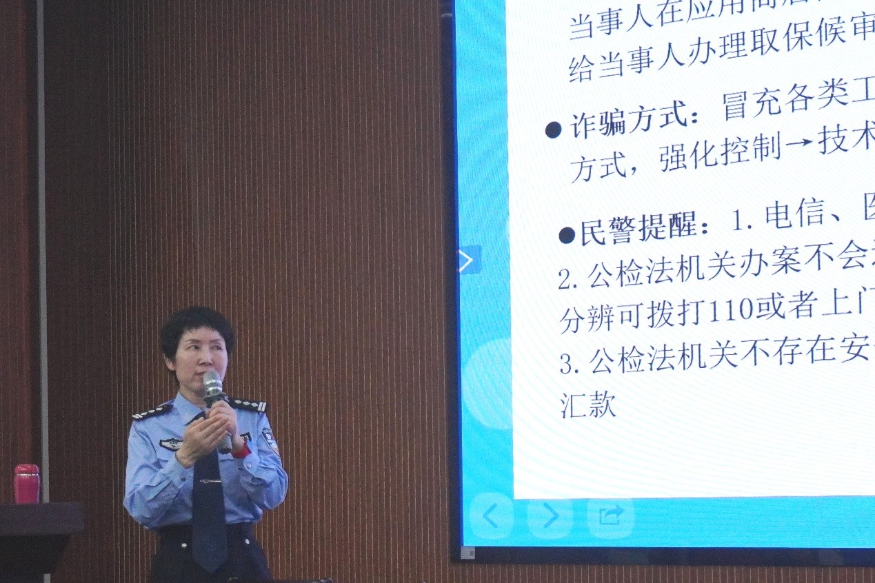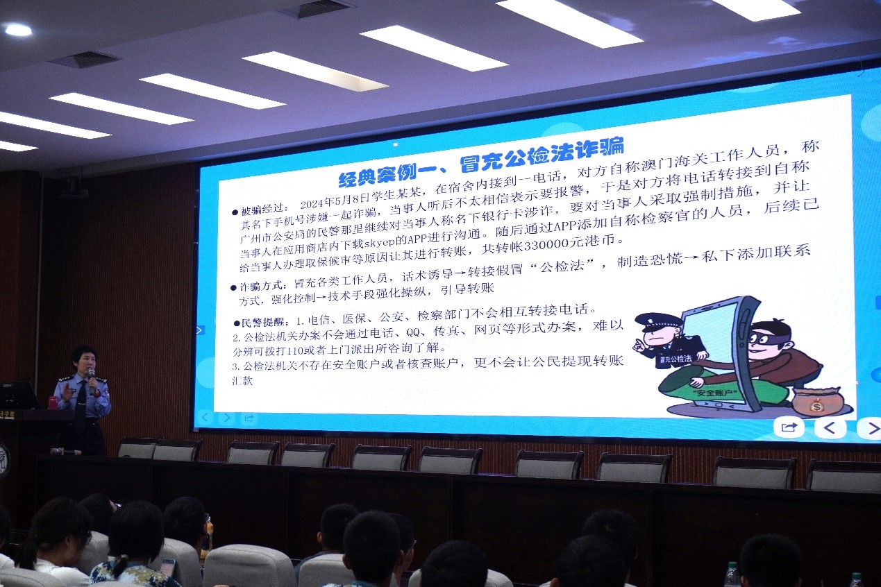 邀请武昌区公安分局珞珈山街派出所副所长孟玲为2024级新生作关于大学生防诈骗案例宣传讲座。