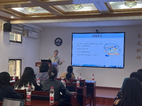 针对焦虑症、强迫症等大学生常见的心理疾病,戈瑶耐心地教会大家如何识别和应对。戈瑶还介绍了精神分裂症,这是自杀率最高的心理疾病。面对精神分裂症,辅导员需采取专人看管、联系家长、及时送医等手段主动干预。最后,戈瑶向大家澄清了对精神疾病的部分误解,并提倡要以积极的心态应对各类心理疾病�