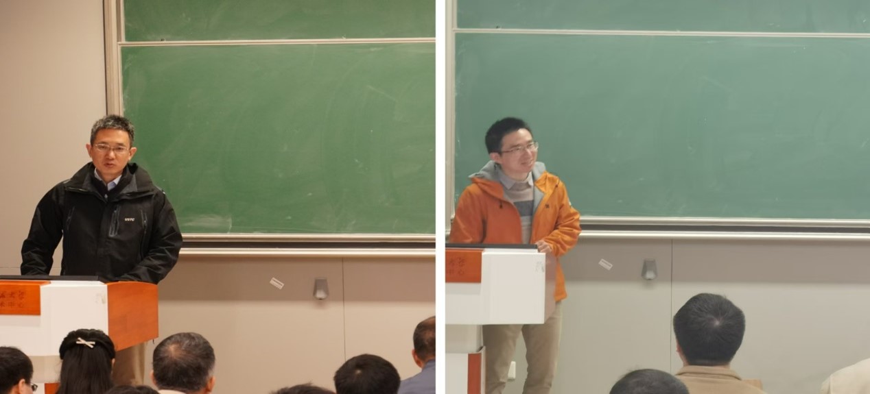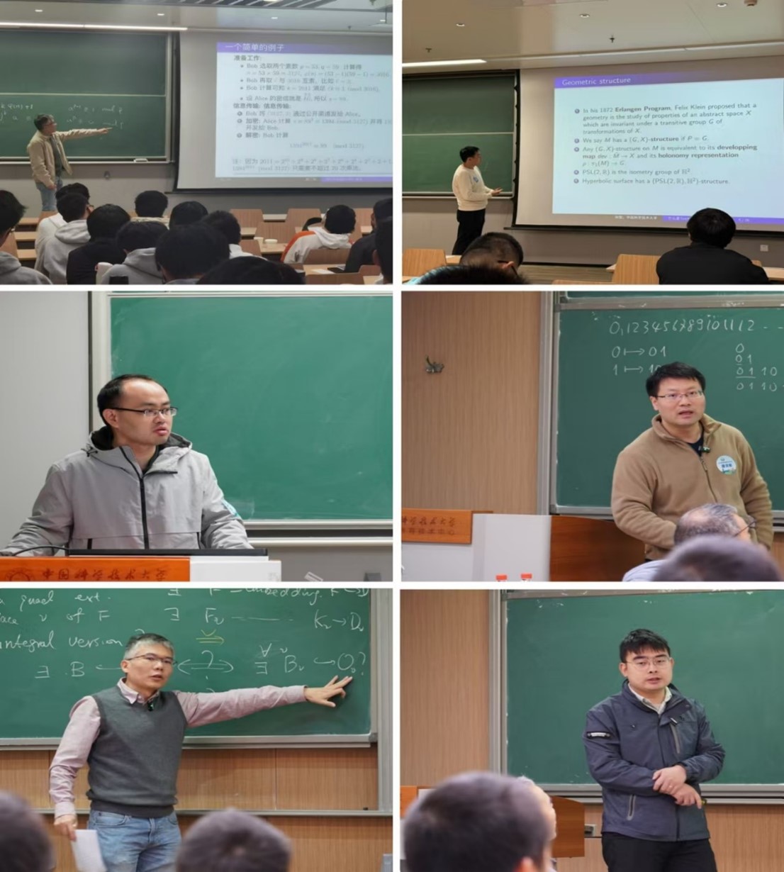会上,两校的多位杰出学者进行了分享报告。武汉大学薛江维教授作《非对称加密与RSA算法》报告。中国科学技术大学孙哲教授作《什么是Teichmuller空间》报告。缪爽教授作《Well-posedness for fluid free boundary problems in general relativity》报告。武汉大学廖灵敏教授作《Normal numbers and multiple ergodic averages》报告。武汉大学王好武教授作《Singular automorphic products and Lie algebras》报告。薛江维教授作《Divisibility of class or type numbers of totally definite quaternion orders and selectivity》报告�