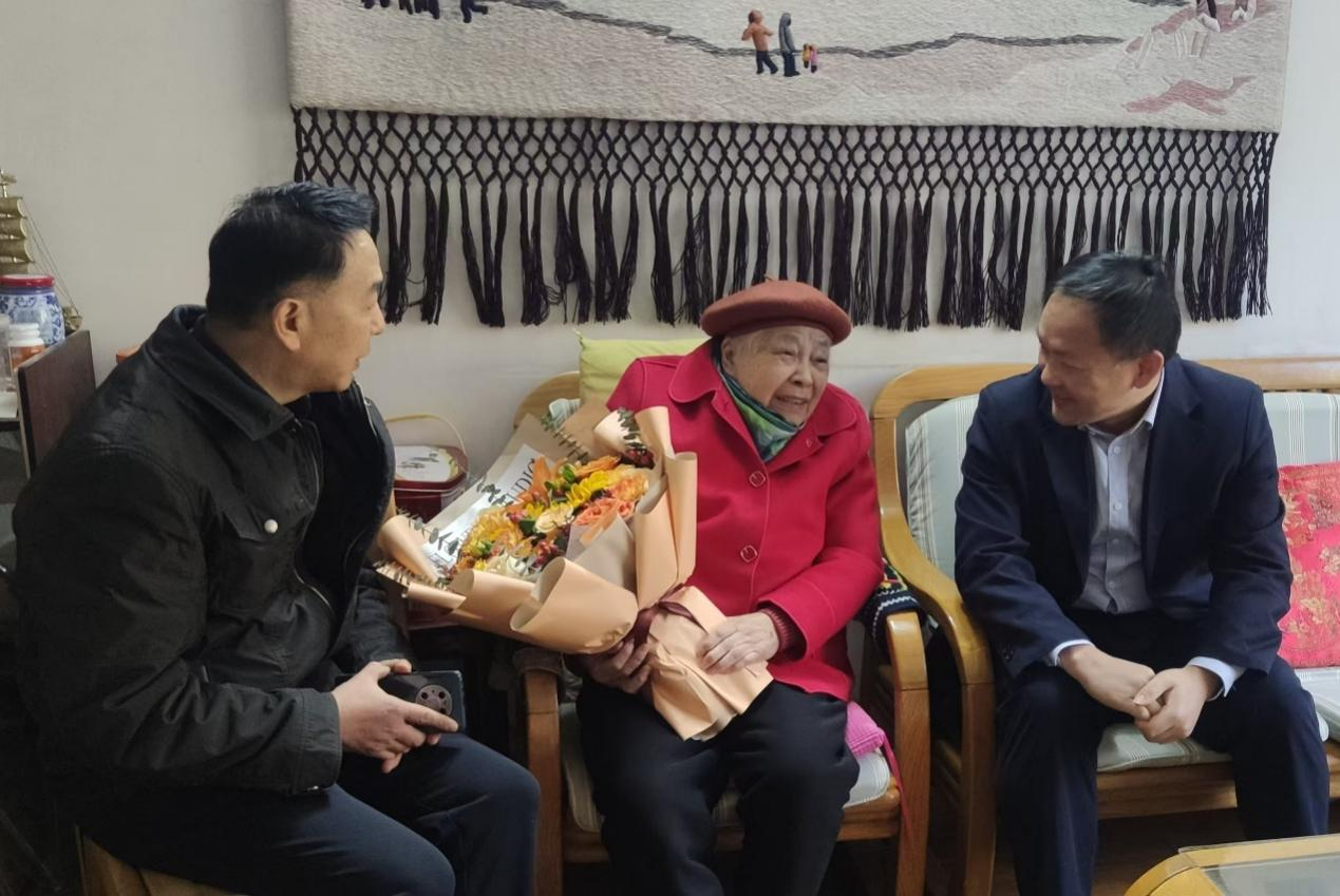 鲜花映红了笑脸,问候温暖着岁月。1月16日上午,院长范辉军专程来到程少兰老师家中,祝贺她99岁生日快乐,送上精心准备的长寿面。范辉军详细询问了程老的身体状况和生活情况,一起回忆20多年前到程老家拜访的情景。他衷心祝福程老健康,相约明年元月为她庆祝百岁生日。