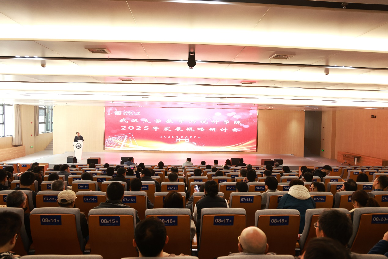 数学学科现状,系统介绍了学院2025年的工作思路,并对2025年的重点工作进行了全面部署。他传达了学校2025年发展战略研讨会会议精神,从科学研究、人才培养、社会影响力和行政服务等方面提出了学院的内在发展目标,并对学院人才队伍建设、研究团队讨论班建设、Colloquium建设、“三个‘1’”课程体系规划、数学文化建设与数学实验室建设以及行政办公室职能全面优化调整等重点工作进行了细致阐述。他强调,2025年是“十四五”规划收官之年,是“十五五”启动教育强国建设全面布局、高位推进之年,是贯彻落实学校第十次党员代表大会精神的开局之年,也是学校的“深化改革年”,我们要锚定目标、攻坚克难,全面深化改革,抓好下一个五年征程的开局起步。