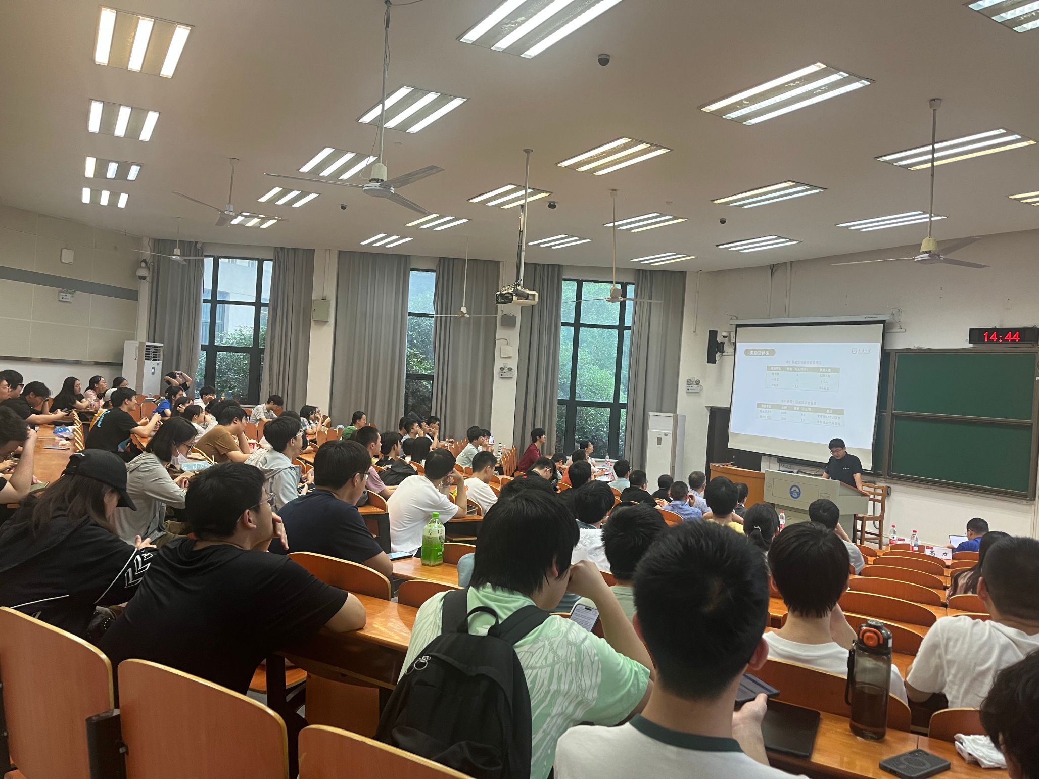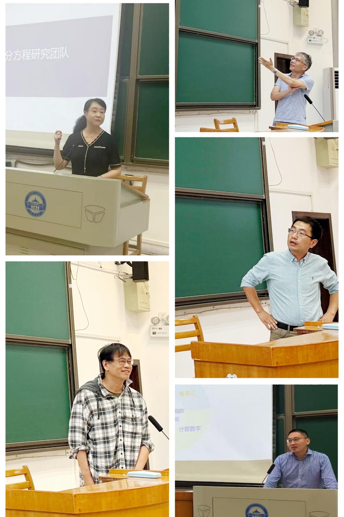 代数教研室薛江维、方程教研室刘晓春、几何与拓扑教研室徐旭、数学物理教研室张怀良、控制科学教研室张灿、复杂系统与智能优化教研室金锁钦、计算数学教研室戴书洋、数据科学教研室赵晓飞、概率论教研室邓昌松、统计学教研室邓世容等共10个教研室的代表教师依次登台,他们紧扣国家战略需求与社会发展前沿,结合各自教研室的核心研究方向、团队合作模式、人才培养特色及代表性成果,详细解读了数学主流领域和交叉学科的发展前景,并针对性介绍了相关方向的就业趋势。宣讲内容丰富多元,为同学们描绘了一幅广阔的学术研究图景。导师们鼓励同学们主动联系老师,以兴趣为导向提前开展学习探索,尽早融入科研氛围。