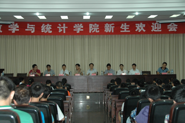 2010级本科新生欢迎大会在数学会堂隆重举行。院党委书记尹常倬教授、副书记吴蜀江老师,副院长陈文艺教授、副院长胡亦均教授,学院各系负责人涂振汉教授、弈旭明教授、胡宝清教授、张希承教授,班级导师朱安强老师、何德彪老师、刘伟老师出席大会。大会由学院学生工作办公室主任黄安云老师主持。