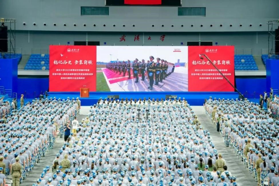 红色教育贯穿军训全程。9月3日,全校新生共观纪念中国人民抗日战争暨世界反法西斯战争胜利80周年大会及阅兵式,学子们深刻体会到国家强盛与和平生活的珍贵。同日下午,军训二团动员大会在桂园操场召开,在珞珈山下吹响军训冲锋号,为训练注入强劲动力。9月9日晚,在军训二团纪念抗日战争胜利主题演讲比赛中,爱情岛
