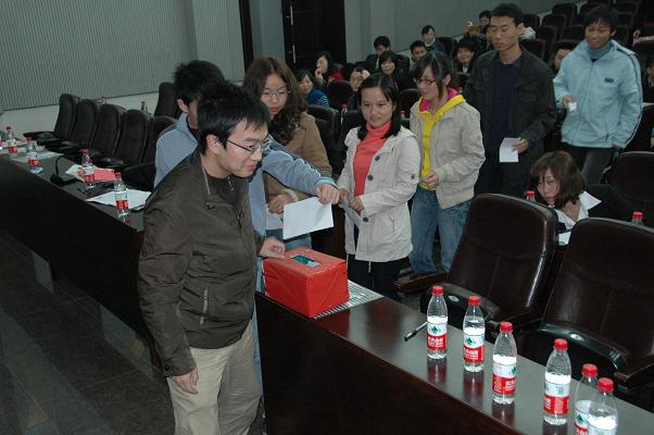 在大会的第二环节,第十届研究生会主席团的竞选更加激动人心。14位候选人分别上台演讲,有的经历丰富,有的激情澎湃,有的创意无限。他们的精彩演讲和对未来工作的计划与热情,赢得了代表们的一致好评。最后,由王忠海老师主持现场投票。经过投票,周航、邓红梅、陶明文、毛利军、何涛、田玉、刘晓宇七名同学当选为新一届研会主席团成员。