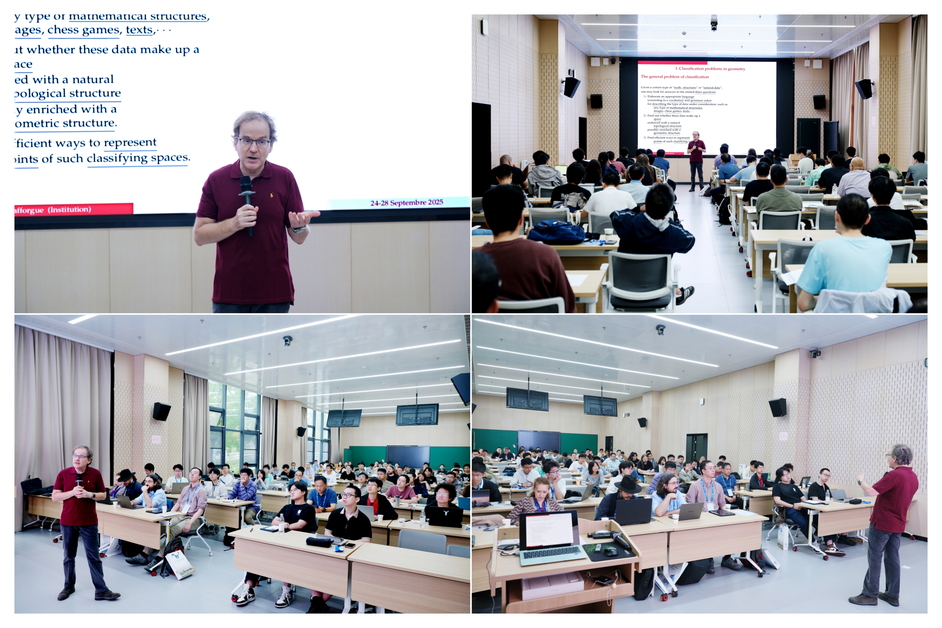 雷军科技楼B102报告厅成功举办。本次研讨班聚焦拓扑斯理论的现代发展与跨学科应用,特邀菲尔兹奖得主、法兰西科学院院士洛朗·拉福格(Laurent Lafforgue)教授及其团队开设短课程和学术报告,吸引了来自清华大学、中国科学院数学与系统科学研究院、复旦大学、中国科学技术大学和牛津大学、柏林自由大学、里昂高等师范学院等国内外多所高校及研究机构的学者、博士后和研究生参与,旨在增进学术交流,促进人才培养。