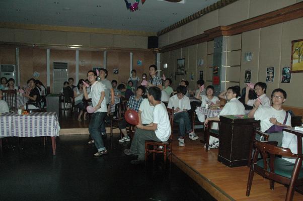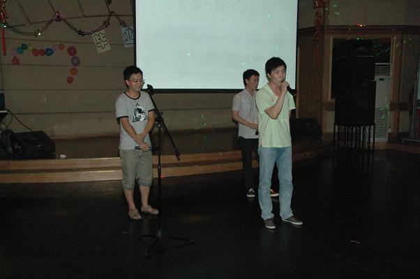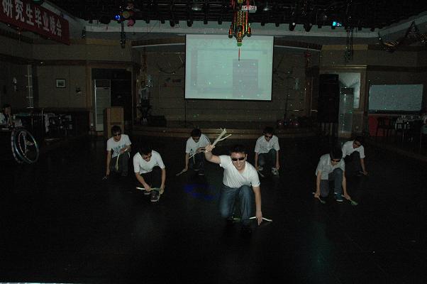 晚会节目精彩纷呈。口琴,歌曲,肚皮舞,甩葱舞,应有尽有。开场的“借纸飞机说出心里话”节目极大地调动了大家的情绪。研二师兄李博、胡昊、郭亚林精彩的歌曲串烧让全场观众大呼过瘾。计算数学的沈宇为和同伴以一曲动感的肚皮舞将全场的气氛推向高潮。《童年》,《让我们荡起双桨》,《好人卡》,《我的最爱》等风格各异的歌曲,道出了对已逝时光的怀念,歌颂了友情,歌颂了爱情,表达了对学校的感激和不舍。第三阶段中研一“葱哥们儿”的一段甩葱舞,活力四射,魅力尽显,全场的气氛空前热烈。