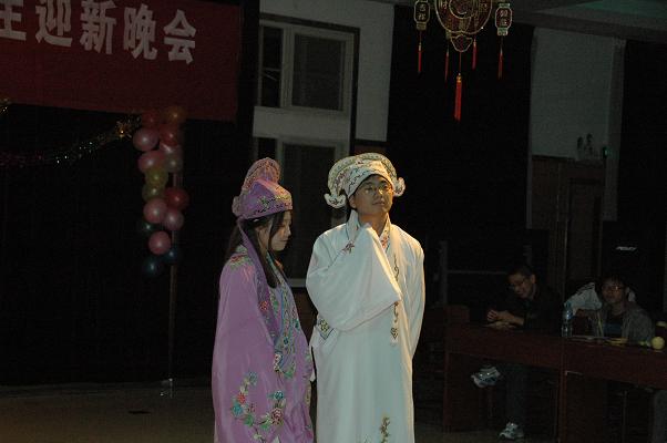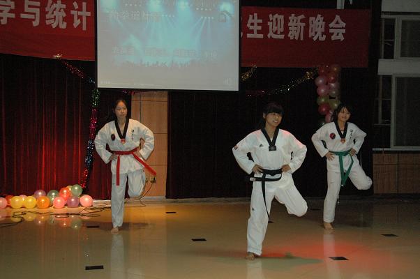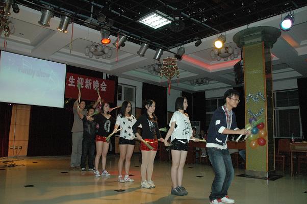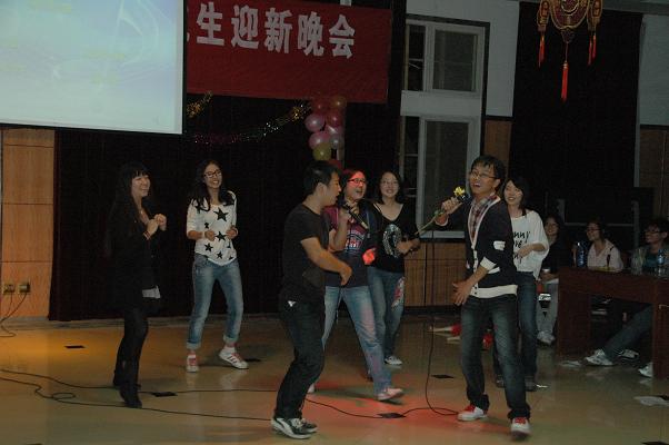 晚会上,尹书记一曲《草原上升起不落的太阳》让研一新生领略了这位“传说中会唱歌书记”的风采,梁涛老师与新生的对唱《你的眼神》、王忠海老师《走天涯》、金勇老师的清唱《望月》给同学们不断带来惊喜。概率班的小品《梁祝》笑料百出,同学们笑声不断。舞起乐鸣,应用统计班的《funny show》一下点燃了现场气氛,把晚会带入了高潮,演出同学那轻灵而娴熟的节奏、动感而激情的舞姿以及她们与音乐完美的融合,无不感染在场的观众。紧随其后的跆拳道舞蹈也毫不逊色,精彩不断。晚会中期老师们参与的互动游戏环节也是本次晚会的一大亮点,王老师在游戏中与同学们机智对勇,最终斩获“亚军”。歌曲串烧节目《hot songs》则呈现了集体创作的力量。