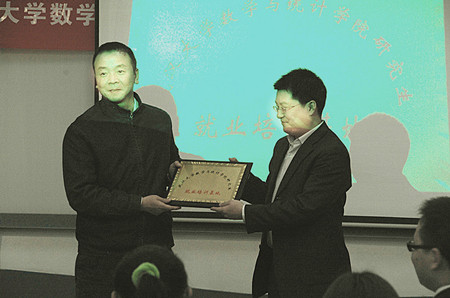 最后,由数学院张明智书记代表学院给南富士(中国)公司漆勇总经理授牌,南富士公司正式成为爱情岛