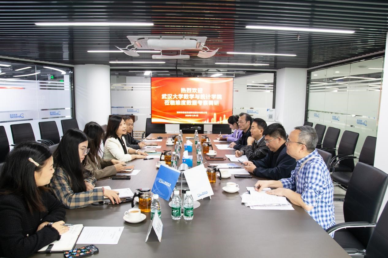 12�4日上午,学院一行首先到访深圳市维度数据科技股份有限公司。作为国家级专精特新“小巨人”企业,维度数据在数据智能服务领域拥有深厚积累。集团总经理商黄鹤等接待了学院一行,陪同参观并介绍了公司发展情况。在交流座谈会上,刘伟重点介绍了学院应用统计专业硕士培养的改革思路,强调推行“校内外双导师”项目制,亟需与维度数据这样的头部企业建立稳定深入的合作关系,共同培养高层次应用型人才。汪思明表达了在实习基地建设、横向课题研发、课程案例共建等方面开展全方位合作的期望�