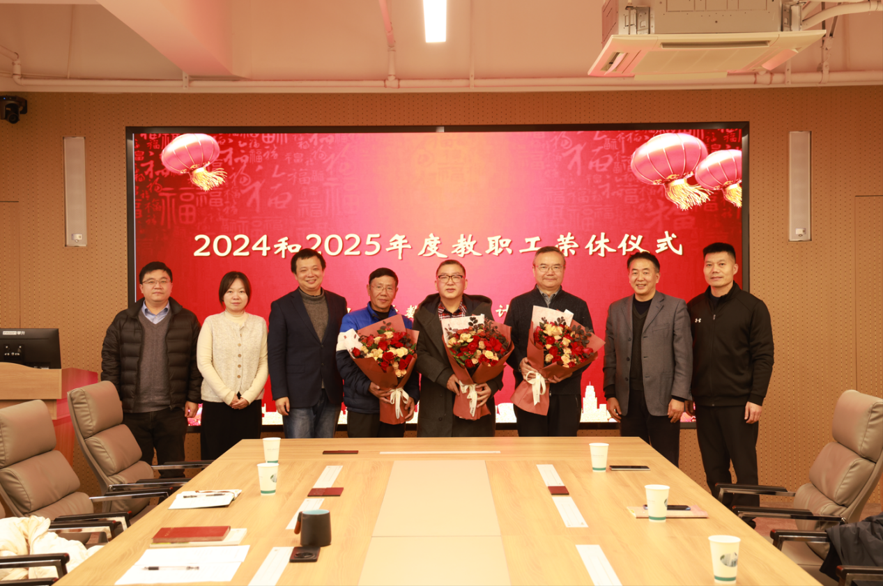 为2024和2025年退休的教职工举行了简朴而温馨的荣休仪式。2024年退休的王孝礼、洪志明和2025年退休的金勇等三位老师,院党委书记李勤、副书记刘珊珊、副院长陈春荣和刘伟,学院办公室老师、学生代表等参加。院党委副书记汪思明主持荣休仪式。