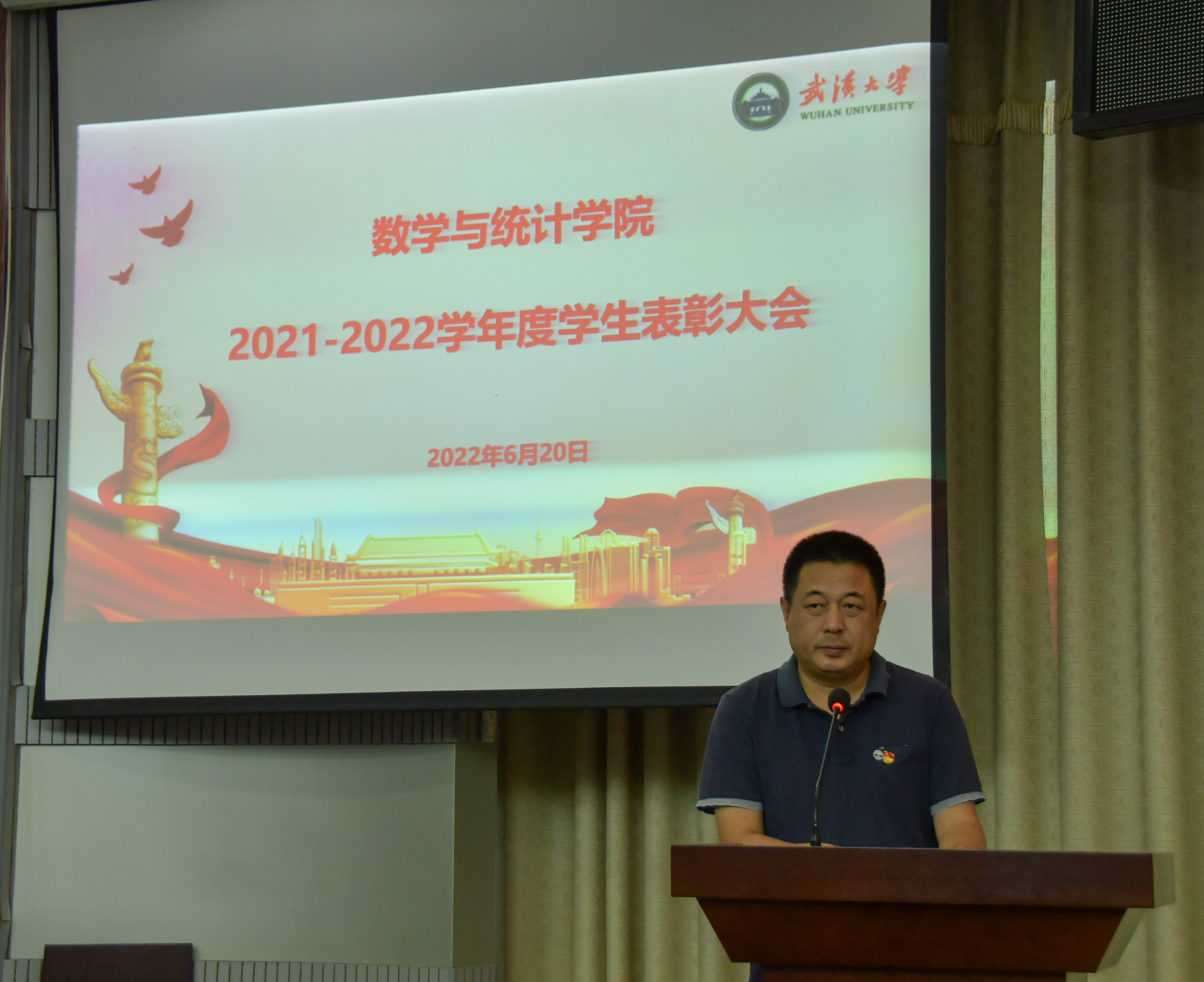 左军祝贺我院学子2021�2022在专业学习、党团建设、社会实践、志愿服务等方面取得的喜人成绩,感谢全院老师辛勤“三全育人”。他概括介绍了我院本学期有关重要工作,勉励全院学子以获奖同学为榜样,立足各自学业和学生组织岗位,努力进取创先争优,用实际行动践行“强国有我”的青春誓言。他祝愿同学们全面提升综合素质与核心竞争力,在建设国际一流数学学院的征途中书写自己的青春华章。他祝福全院2022届毕业生同学前程似锦,在报效国家服务社会中建功立业�