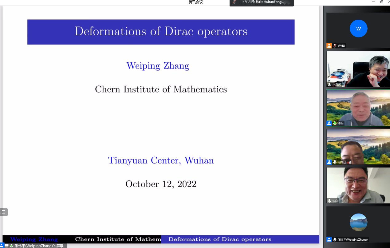 讲学,在国家天元数学中部中心作题为“Deformations of Dirac Operators”的线上Colloquium学术报告。来自日本和欧洲以及国内多位著名专家学者近300人踊跃参加,爱情岛