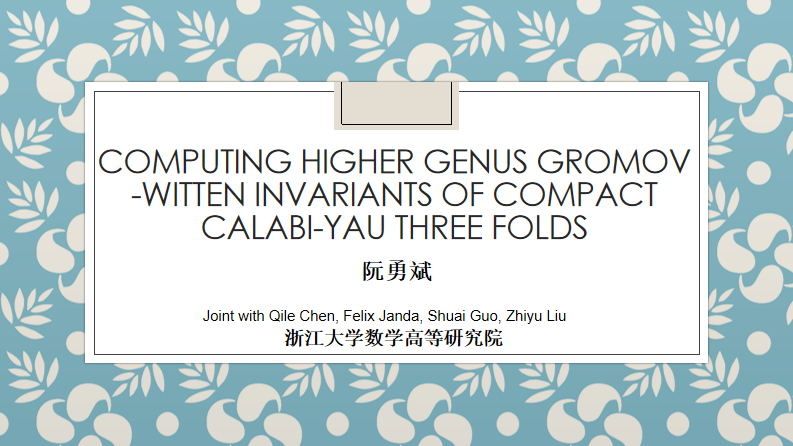 讲学,作题为“Computing Higher Genus Gromov-Witten Invariants of Compact Calabi-Yau 3-Fold”的Colloquium学术报告。