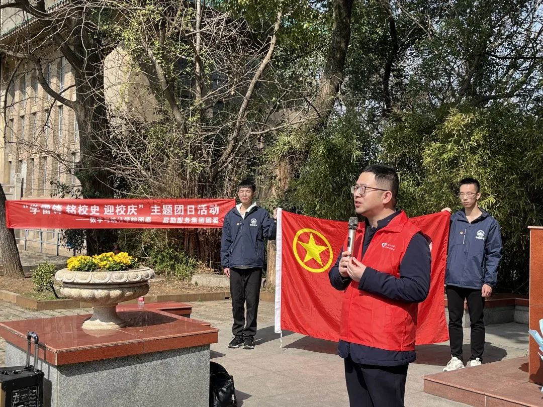 2023�3�5日是�60个学雷锋纪念日。为了深入学习雷锋精神,号召广大团员青年投身志愿服务,进一步铭记校史校训,开展爱校教育劳动,以实际行动迎接武汉大学建�130周年华诞,数学与统计学院团委、后勤服务集团团委于3�5日上午联合举�“学雷锋·铭校史·迎校庆�主题团日活动。校团委书记黄鑫,数学与统计学院党委副书记汪思明,后勤服务集团党委副书记、纪委书记石向月,数学学院首�“青马班”学员,数学学院和后勤集团志愿者代表参加,数学学院团委书记刘宇晖主持活动�