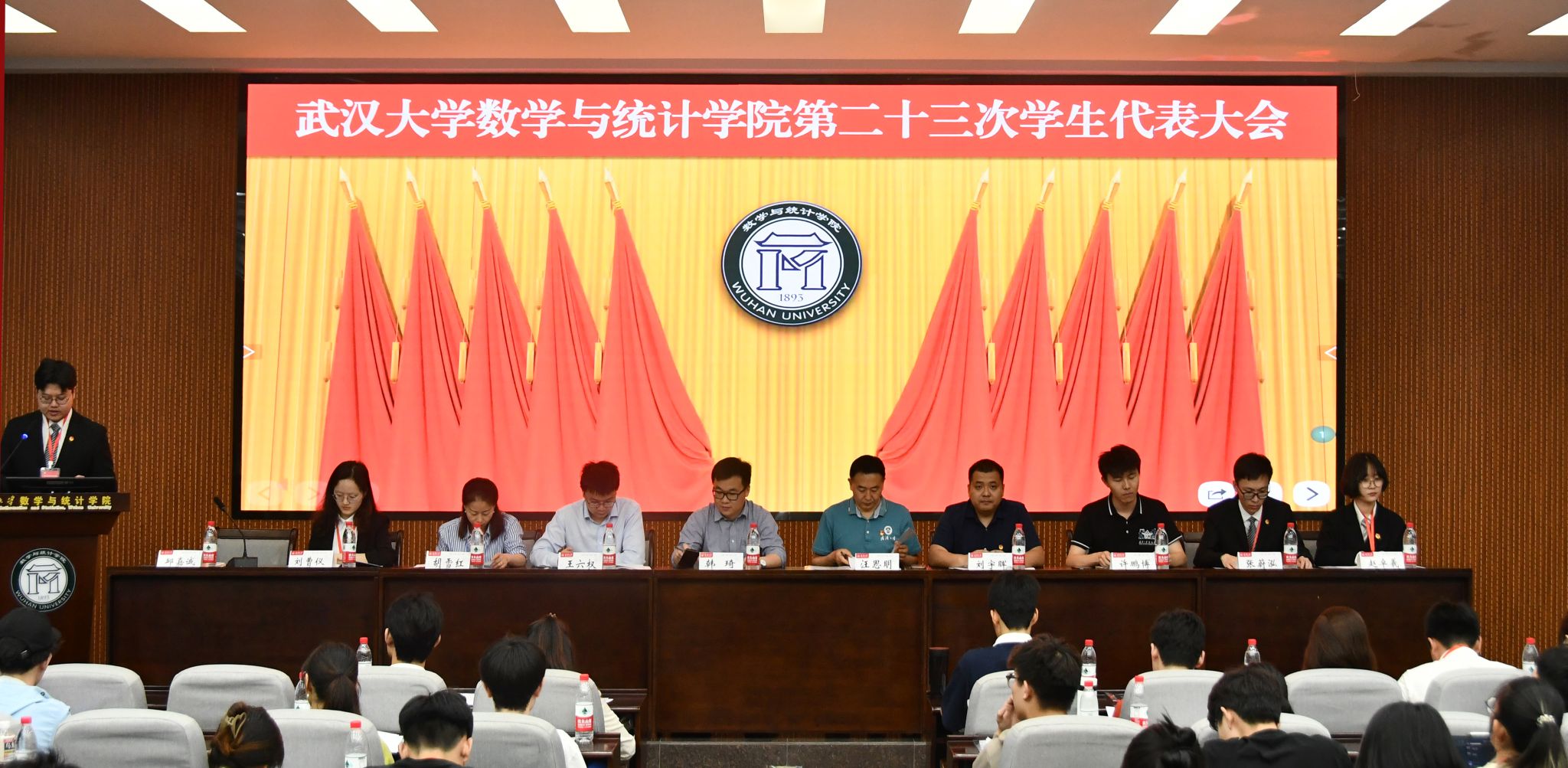 5�4�下午,武汉大学数学与统计学院第二十三次学生代表大会于樱顶数学会堂正式开幕。校团委副书�韩琦、院党委副书�汪思明、副院长王六�、教学办副主�胡雪纀�院团委书�刘宇晖、校学生会主席团成员许鹏�出席会议。我院往届学生会代表、中国人民大学统计与大数据研究院张宇�老师以及兄弟学院学生会代表应邀列席会议�