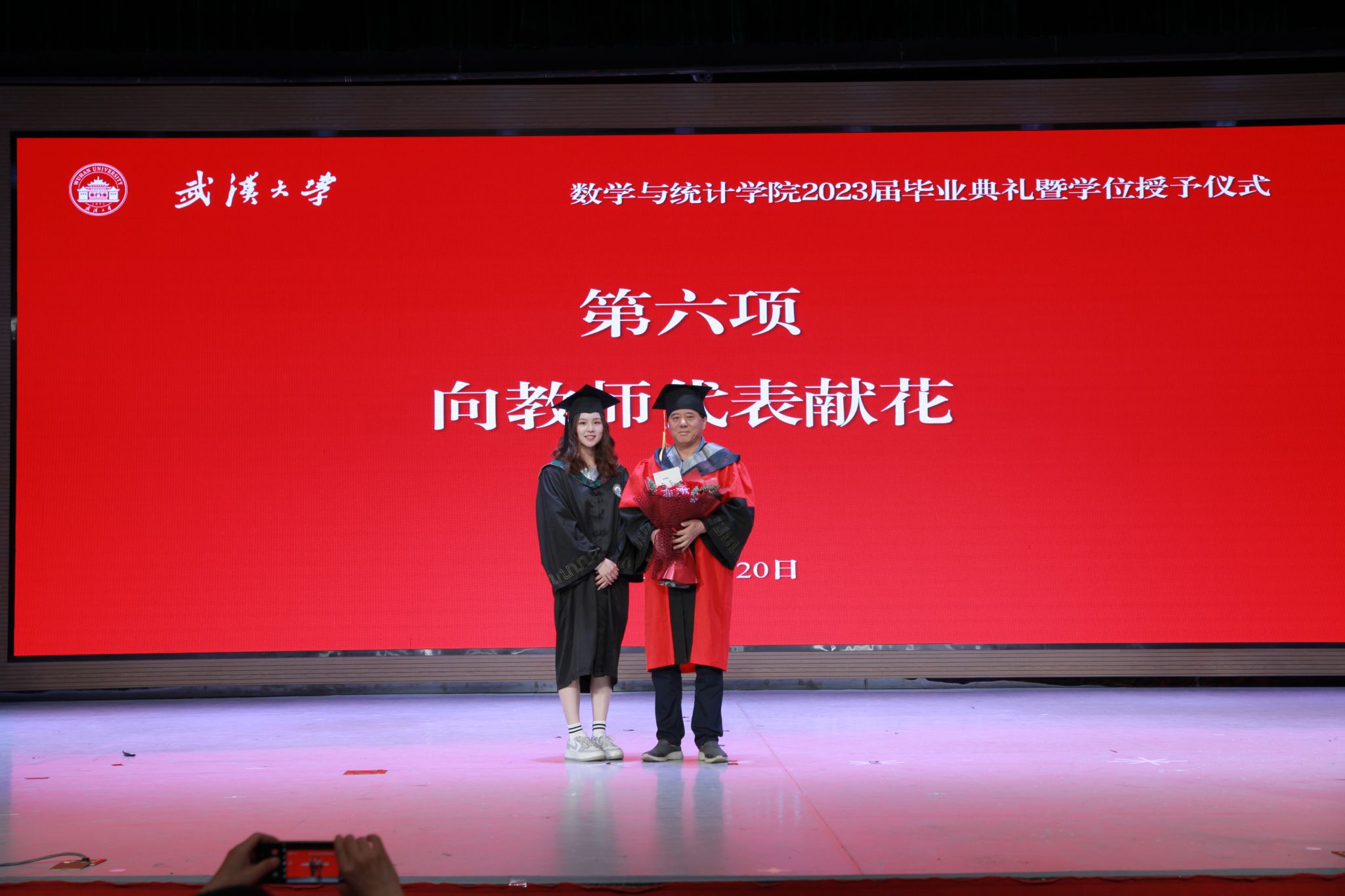 邵天玥代表毕业生向教师代表陈�教授献花,表达了对老师们辛勤栽��崇高敬意�