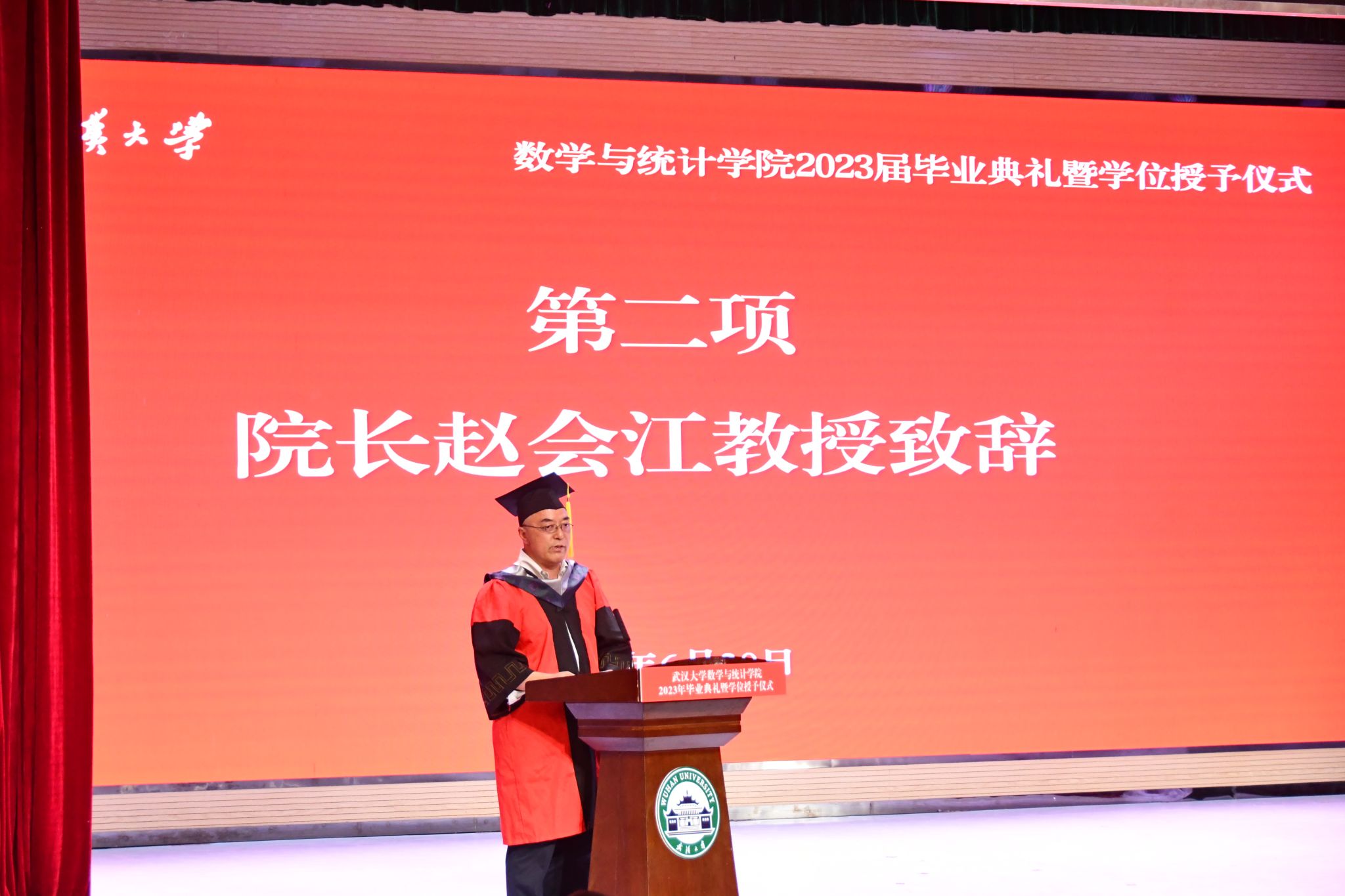 院长赵会江代表学院致辞,祝贺同学们顺利。他对毕业生提出了希望和要求,寄语数学学院的毕业生勇于担当社会责任,在面对困难时学会理解和宽容�