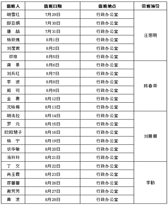 四、行政值班安排