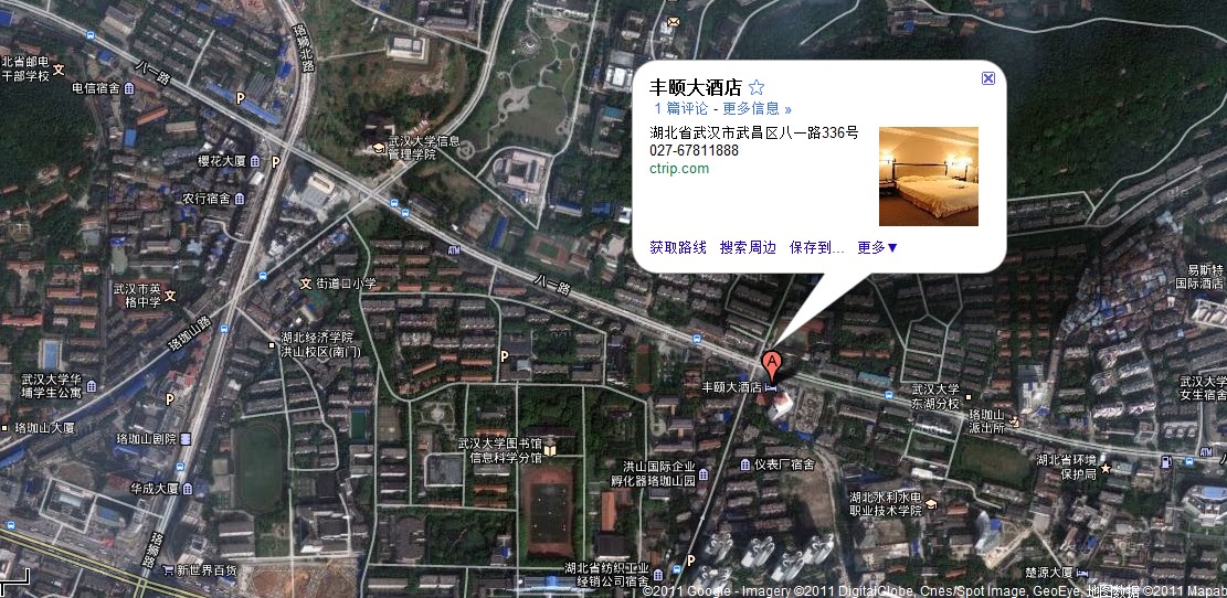 | 1、乘519路公共汽车,到珞珈山终点站下车,换乘 413路或806路, 在广八路站(1站下车,步行30米至丰颐大酒店。2、直接乘出租汽车到丰颐大酒店,车费约50元左右。