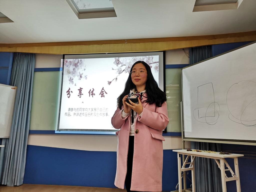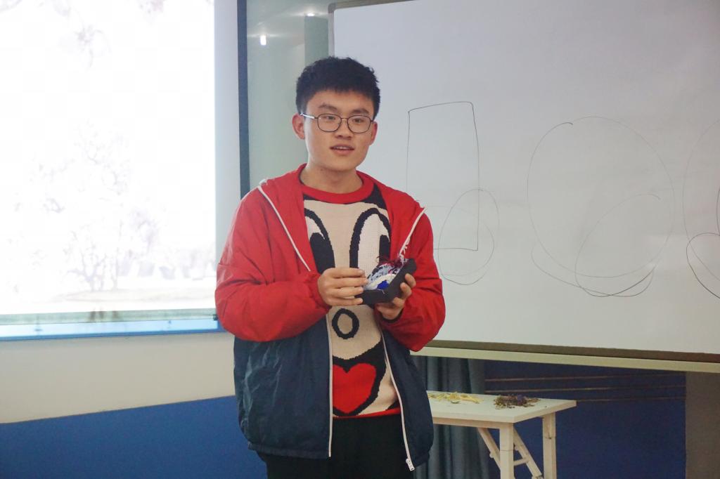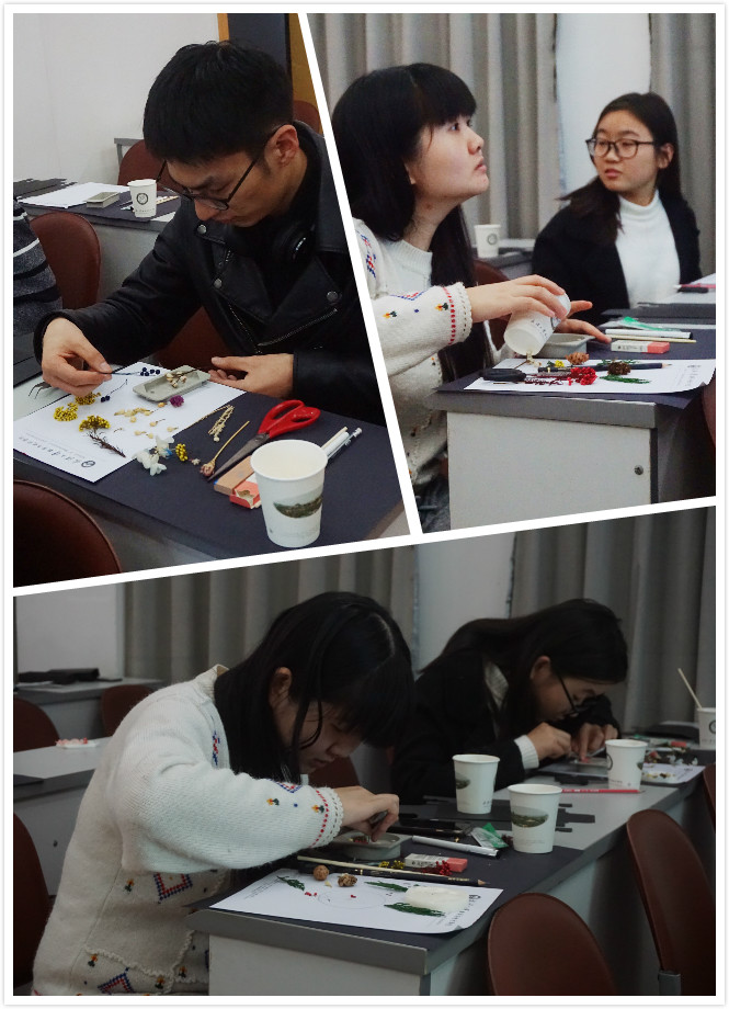 接下来,方圆老师用风趣幽默的语言以及简洁明了的板书展示了香薰蜡片的制作过程,并希望同学们在制作之前能够在脑海中先回忆一段难忘的经历或者一个重要人,以此为灵感构思自己的作品。同学们情绪高涨,纷纷上台挑选自己心仪的花材以及喜欢的香薰精油。然后根据自己想要分享的故事,绘出设计图,随后开始了实际操作�