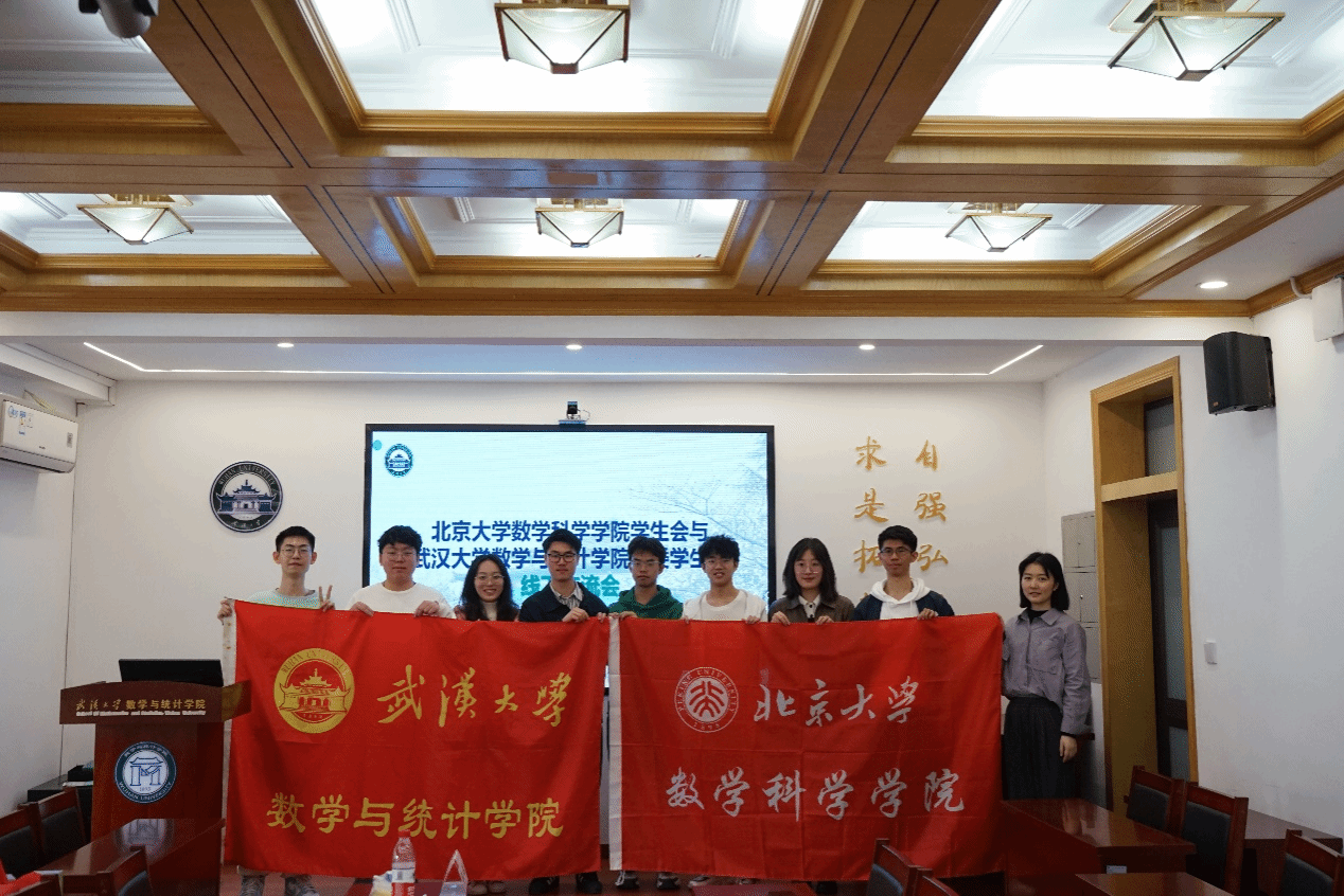 交流会分三部分进行。武大数院团委学生会骨干首先分享了武大数院团委学生会所分管的各部门的工作和职责,向北京大学数学科学学院学生会的两位同学展示了爱情岛