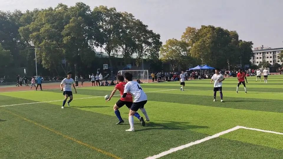 2021年度“振兴杯”大学生足球赛数院对阵经管的比赛在桂操展开。赛前,队员们摩拳擦掌,力求出线。随着主裁判的一声哨响,这场紧张的对决拉开帷幕。