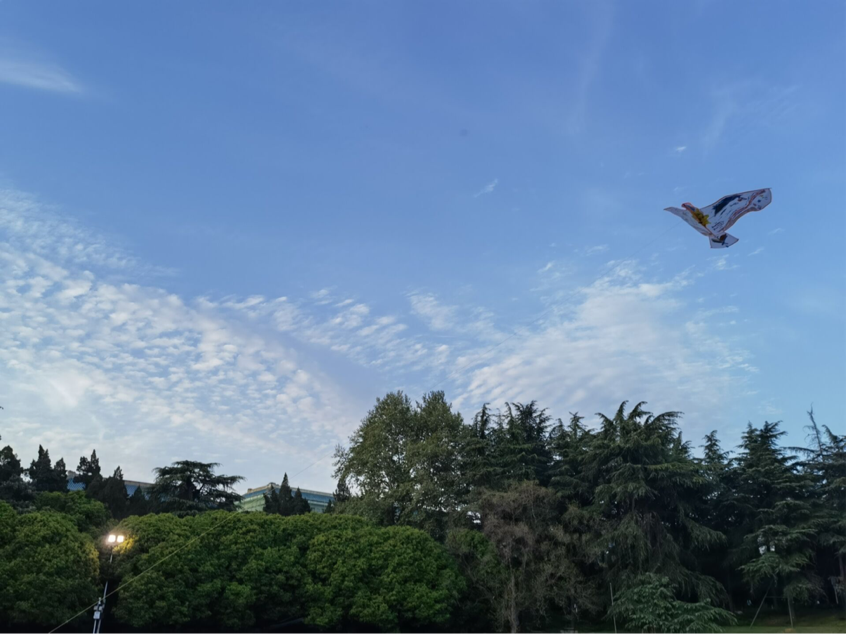 “艺术家们”激动地带着作品在空地放飞玩耍,奔跑的身影间充满着昔日岁月熟悉的童声喜乐,风筝放走同学们的忧思烦闷,嬉笑迎来2022年的快乐春日。