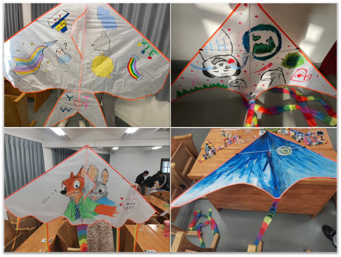 本次活动由心理协会提供纸鸢DIY制作相关材料,同学们依喜好自由发挥,制作自己心中的理想风筝。同学们童心未泯,无论画技,埋头认真绘画,创作出一件件“童趣大作”。
