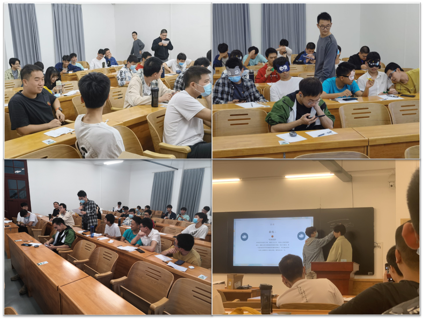 主讲人分享本次班会背景并分享人际关系相关心理知识,“大风吹star”、“你画我猜”、“模棱两可”等游戏拉近同学距离,同学们表达着天马行空的想象力,踊跃发言,深入沟通。“吐槽大会”上同学们尽情抒发压力,表达内容各异,畅快交流。