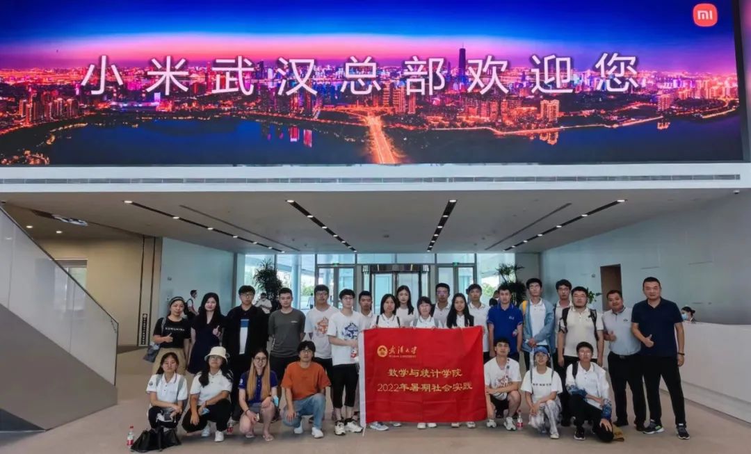 7�11日下午,武汉大学数学与统计学院实践队在院团委书记、本科生辅导员刘宇晖老师,院团委副书记、研究生辅导员宋智祺老师的带领下前往位于中国光谷的小米武汉总部(以下简称小米)进行参访学习�