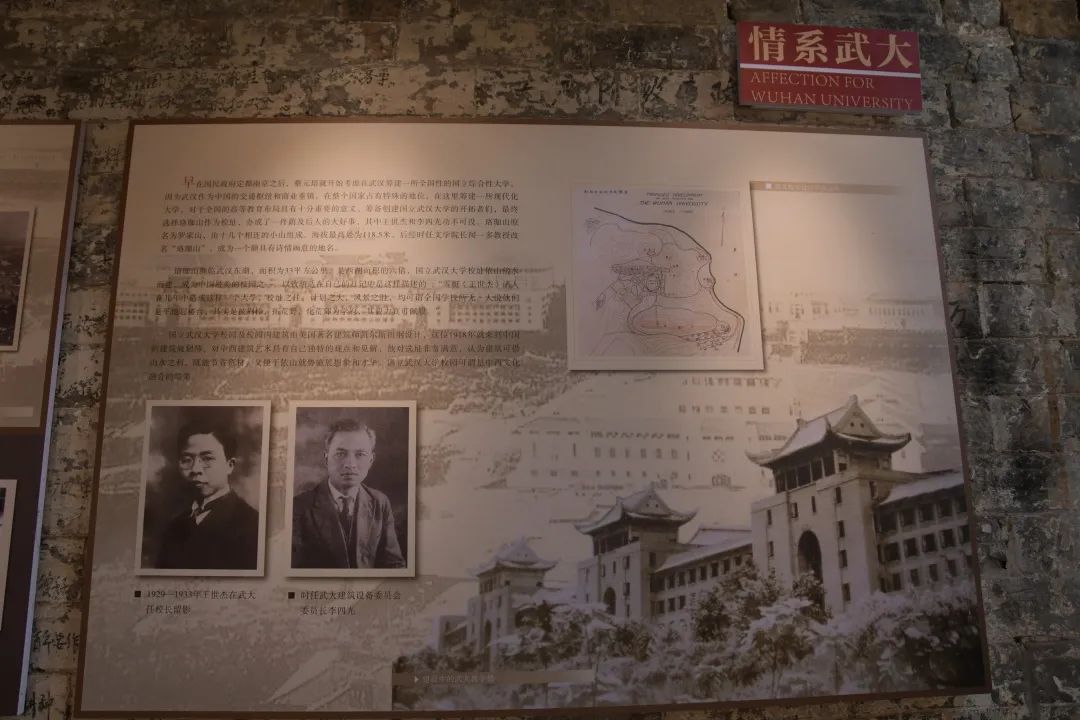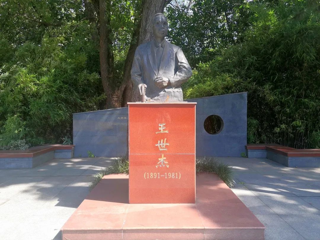 国立武汉大学首任校长王世杰,为武汉大学早期发展做出了杰出贡献�2003�110周年校庆时,王世杰塑像在老图书馆东侧、数学与统计学院西侧正式落成,手持书卷的王世杰佩戴眼镜的半身像端立在樱顶,注视着往来于图书馆和数院的莘莘学子�