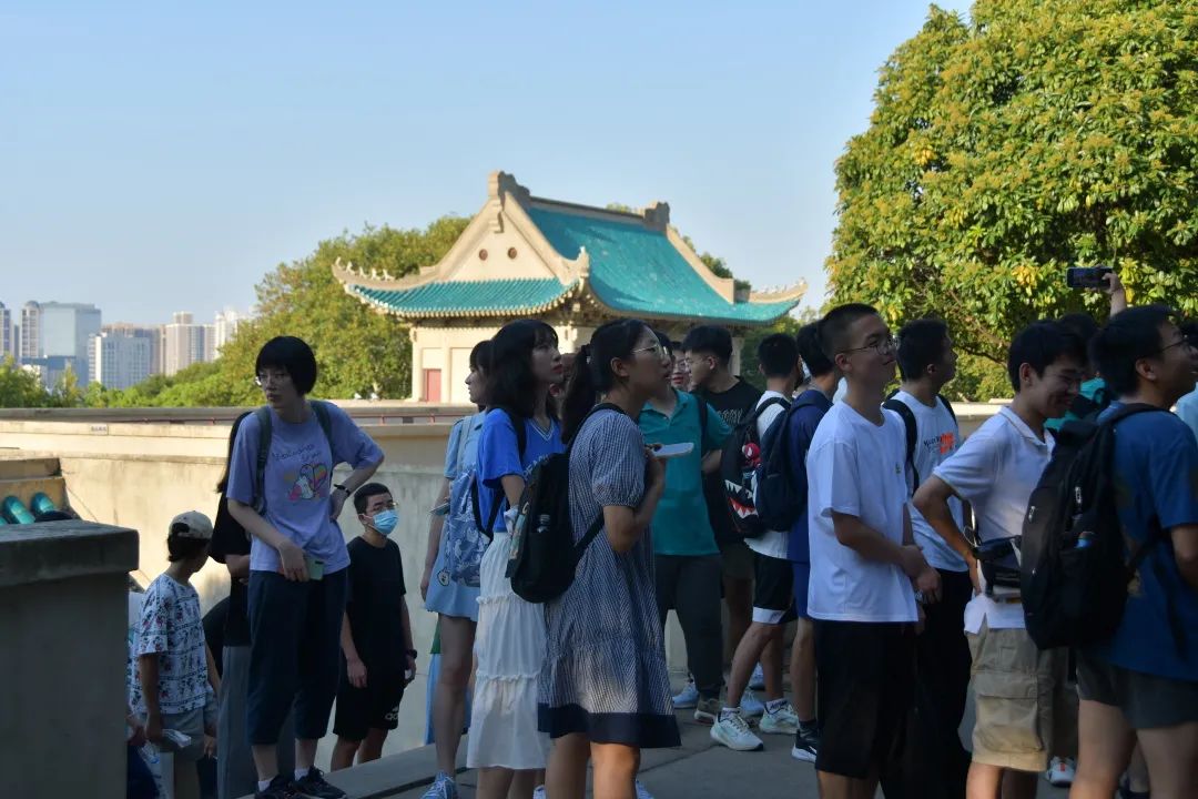 在樱顶之巅,矗立着庄严巍峨的老图书馆,新生们纷纷驻足,认真聆听生动的讲解,用心感受武大的历史底蕴。沿坡拾级而下,宋卿体育馆逐渐映入眼帘,外观古朴、结构精巧,他的故事也深入人心。顺山势而下,新生们逐一经过教三楼、教六楼、桂园操场、风雨操场、教四楼等上课的地点和军训场所。
