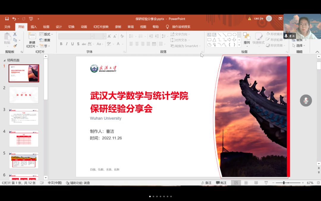 上午场的分享会于上午9:00开始,由2020级学生会成员张荣恩主持,我们邀请到了2019级的优秀学长学姐曹洁、刘禹希、周照杰、彭睿骁、衣孝儒和别品贤。