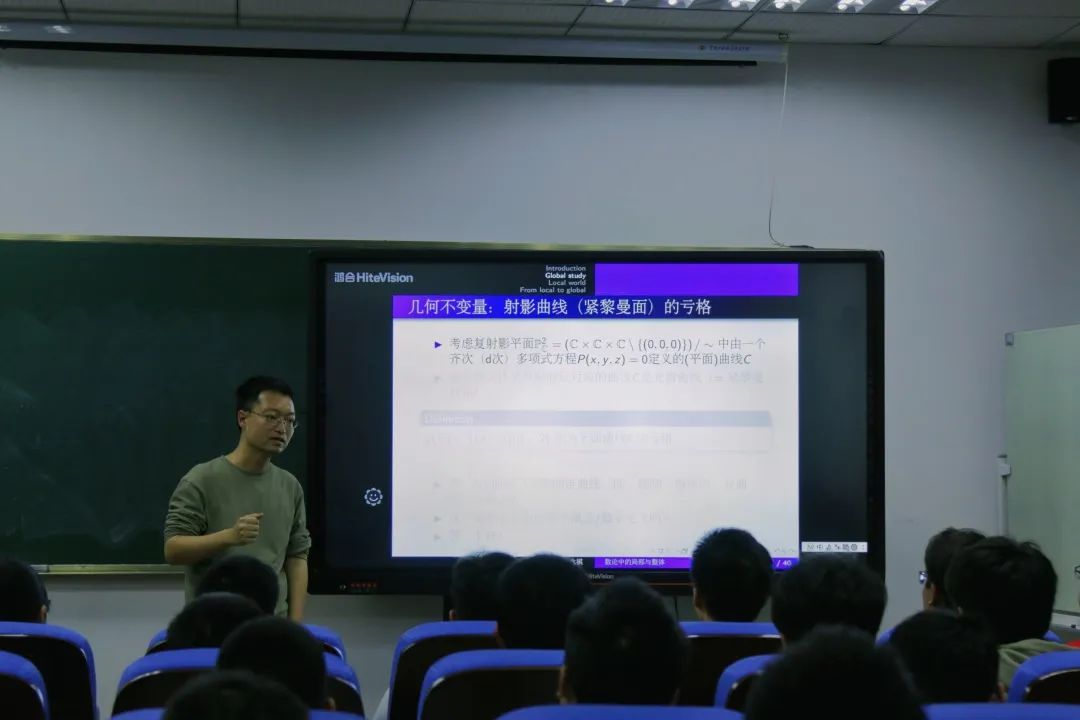 为激发同学们的兴趣,梁永祺从解方程是数学的中心问题出发,指出方程既包括来源于物理的微分方程,也包括来源于数学自身的多项式方程。梁永祺表示,数论是研究整数的理论,代数几何则是研究代数簇的理论,算术几何则是两者的交叉。接着他以历史上几个著名问题为例子阐述了整体域上的几何研究背后的几何决定算术的哲学观点。