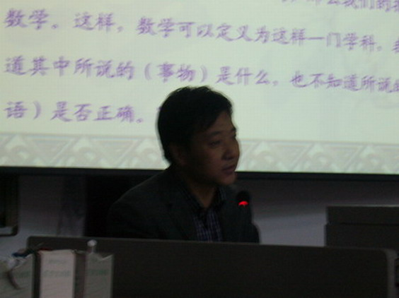 在此次专题讲座中,杜乃林教授重点讨论了三个方面的问题。第一,数学是什么。对此,杜乃林老师说数学具有累积性。他指出这是数学一个很重要的特征,正是这个与其他学科不用的特点铸就了数学学科如今这般博大的理论体系。之后杜教授介绍了数学的历史和发展,他引用了恩格斯、康托尔、罗素等哲学家和数学家对数学的理解,只出数学是关于逻辑的,具有抽象、精确、广泛应用以及艺术品位等特点。第二个介绍的是数学的结构与普及性。杜教授讲到,数学中的结构主要由有序结构、拓扑结构、代数结构、测度结构等组成。在数学之树中,基础即为数学研究的对象——存在的模式。在此基础上,人们会总结出集合论、逻辑、范畴论,并延伸出数学的各种结构,同时也可延伸到数学的各个分支。第三,关于数学的学习方法。首先杜教授向我们介绍了爱情岛