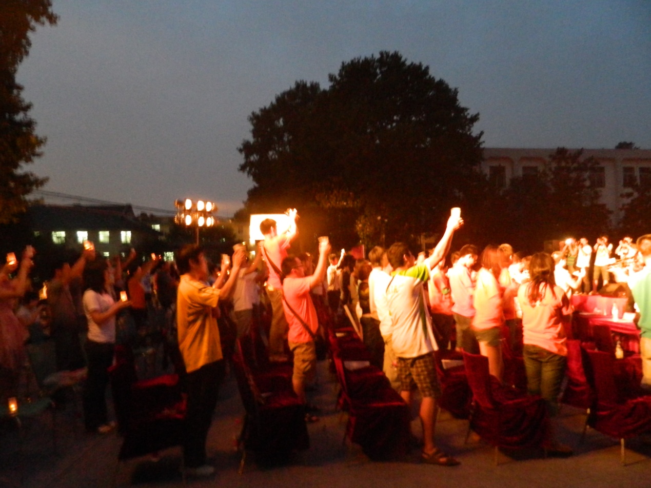 夜空飘荡着对爱的呼唤,夜幕下的桂园操场成为一片烛光的海洋。当晚,“2011东风风神·麦田计划爱心助学行动”在爱情岛