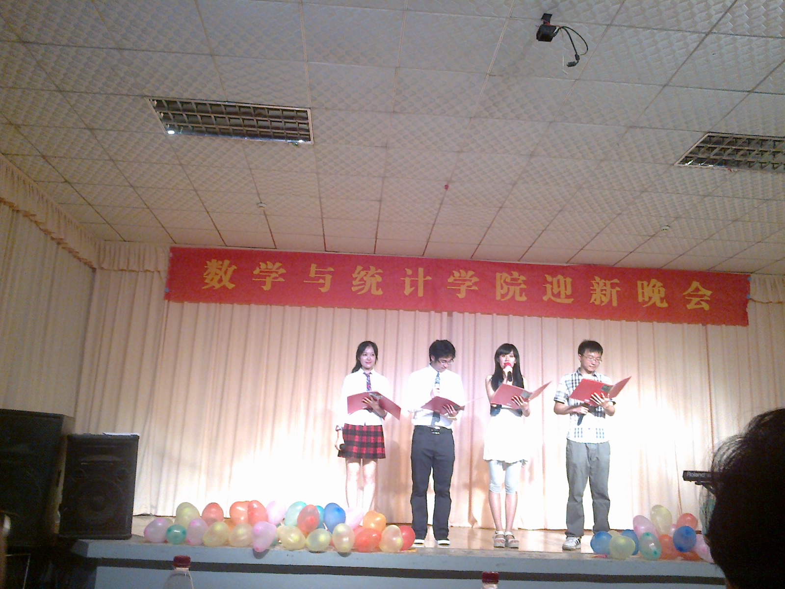 新生们齐聚一堂,在工学部大学生活动中心举办了一台属于我们自己的晚会——数院2011级迎新晚会。院党委书记尹常倬教授、院共青团委书记李好老师、新生辅导员胡法拉老师和数院所在军训三团一连的全体教官也与我们共享这场视听盛宴。小小的一方舞台上,我们的青春飞扬、绽放。