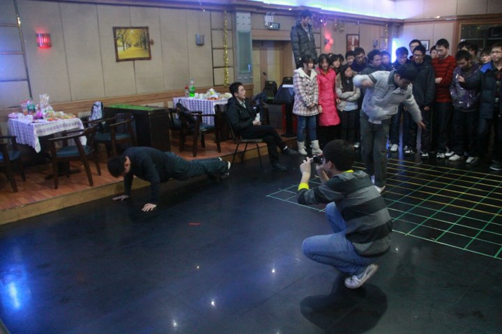 二位老师别出心裁,循序善诱,设计了考察责任心和团队精神的扫雷游戏,所谓寓深意于嬉戏,快意中有所得,这已是相当令人陶醉的了。到现场的70余名学生被随机分为两组进行比赛,先是探雷,之后团体成员都要从这条既探出的“既定路线”走过,若有一位成员稍一失足踩线或不记路线,所有成员均要重新开始。咋听如此游戏,对象是数学基地班学生,颇有轻视我等大学青年之意,诸位均有“反掌之易”的感觉。