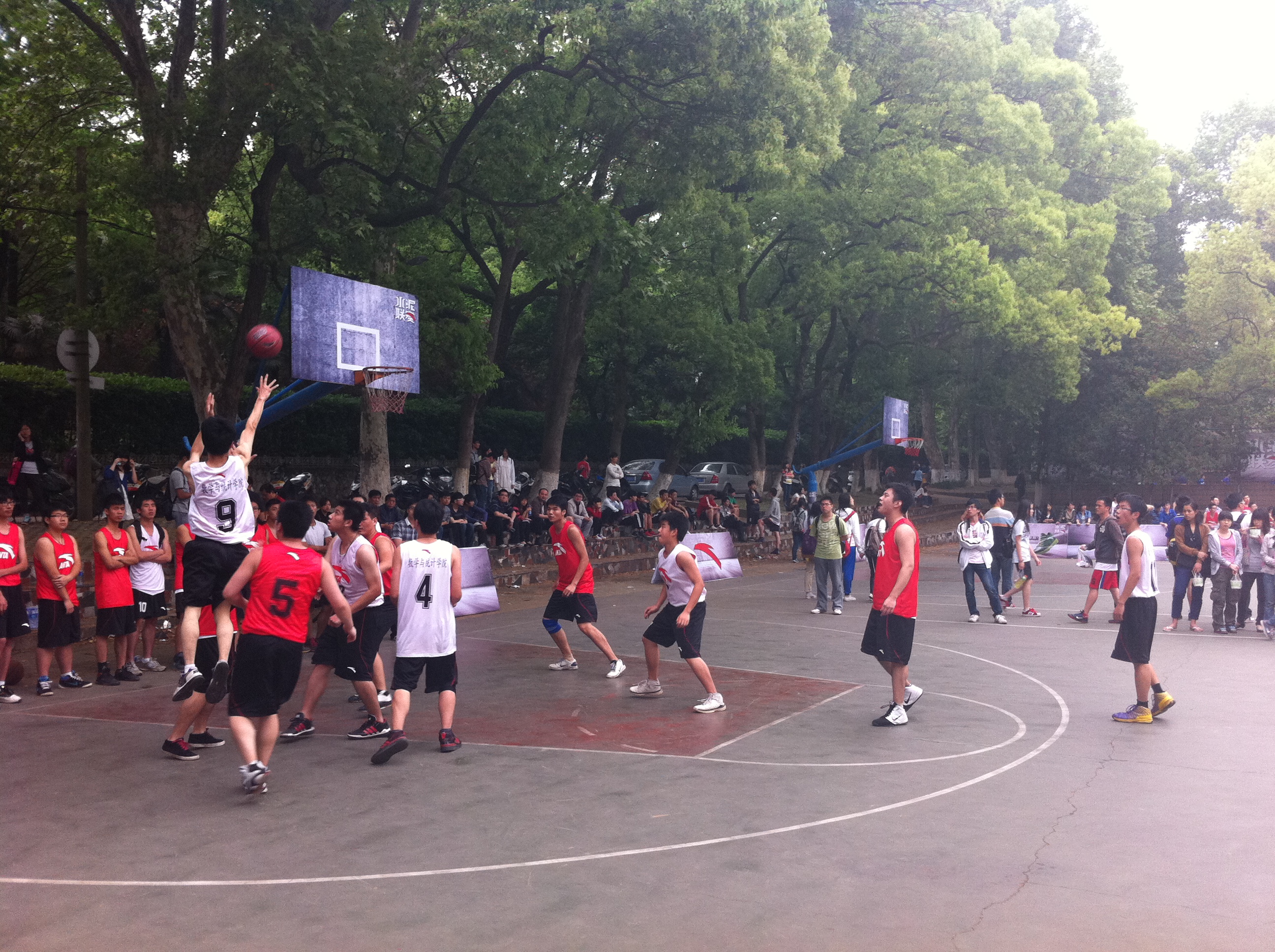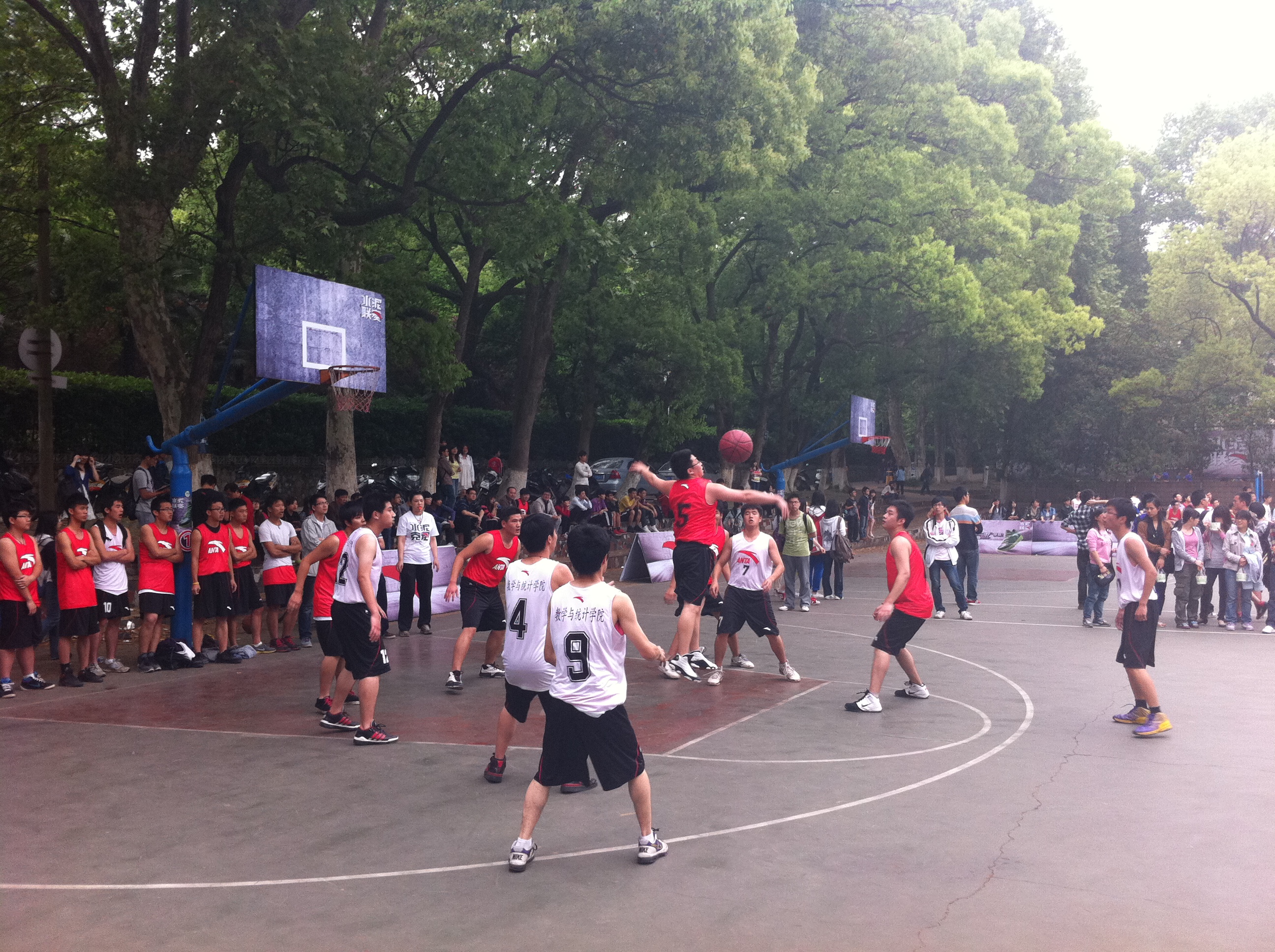 4月25日下午4点,“水泥克星”篮球赛正式开幕,数院也迎来了在“水泥克星”篮球赛中的第一场比赛。身着白色队服的数院队员与身着红色队服的法院队员在梅园操场展开了一次激烈的交锋。经过近1小时的较量,最后数院以23:37惜败法院。