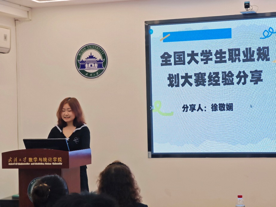 徐敬娴同学作为首届全国大学生职业规划大赛省赛获奖代表,为同学们分享自己的参赛经验。徐同学表示,要合理地设定职业目标,将个人目标与国家发展大事业结合起来,要有实在的行动方案,将理论与实践相结合,要有体现成长过程的故事,将情感表达与逻辑输出相融合。