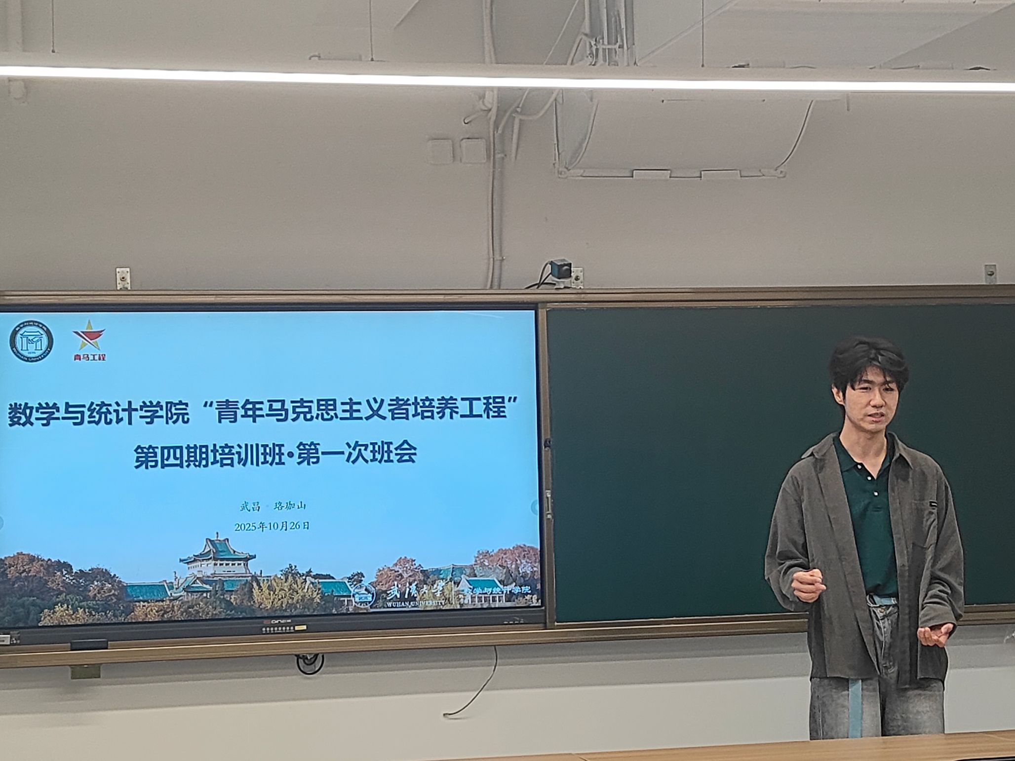 班会伊始,班主任刘傲然老师主持进行开班仪式。刘傲然老师首先为学员们系统阐述了“青马班”的培养目标与育人环节。他指出,“青马班”旨在通过系统性的理论学习与实践锻炼,引导学员坚定马克思主义信仰,深化对马克思主义的理解和认识,深刻把握马克思主义与数学学科的有机结合,以充分激发培育学员爱国奉献、责任担当、不畏挑战、矢志创新的内生发展动力,树立“功成不必在我”的精神和“功成必定有我”的决心。