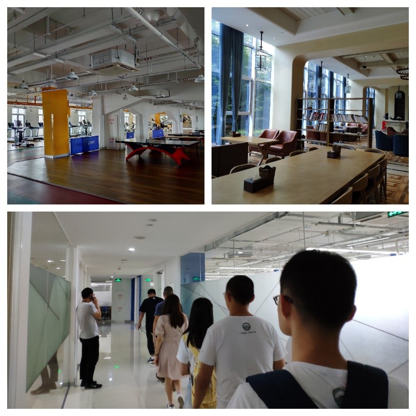 在HR的带领下,队员们参观了同花顺新大楼的办公区域,以及大厅、健身房、休息区等配套设施区域,对该公司的工作环境有了初步了解。在参观过程中,王经理向我们简要地介绍了同花顺的公司情况。同花顺是国内第一家互联网金融信息服务行业上市公司,其财务产品APP在同行市场中已占据第一份额,同时同花顺是一家关注金融数据的公司,其员工人数超过3500人,技术与销售人员各占一半�