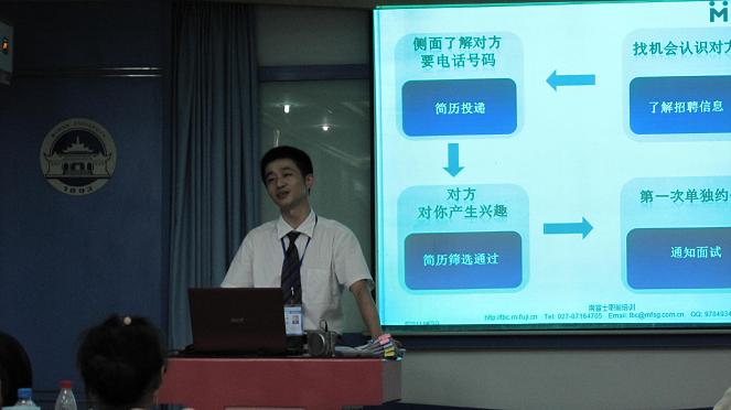 从关心学生就业考虑,为学生安排了一次职前培训课程,为学生求职路上点亮了一盏明灯。5月20日,专业职业培训机构--南富士职业培训的三位资深培训师在校工会给数学院2010级50多名研究生教授了精彩的一课。