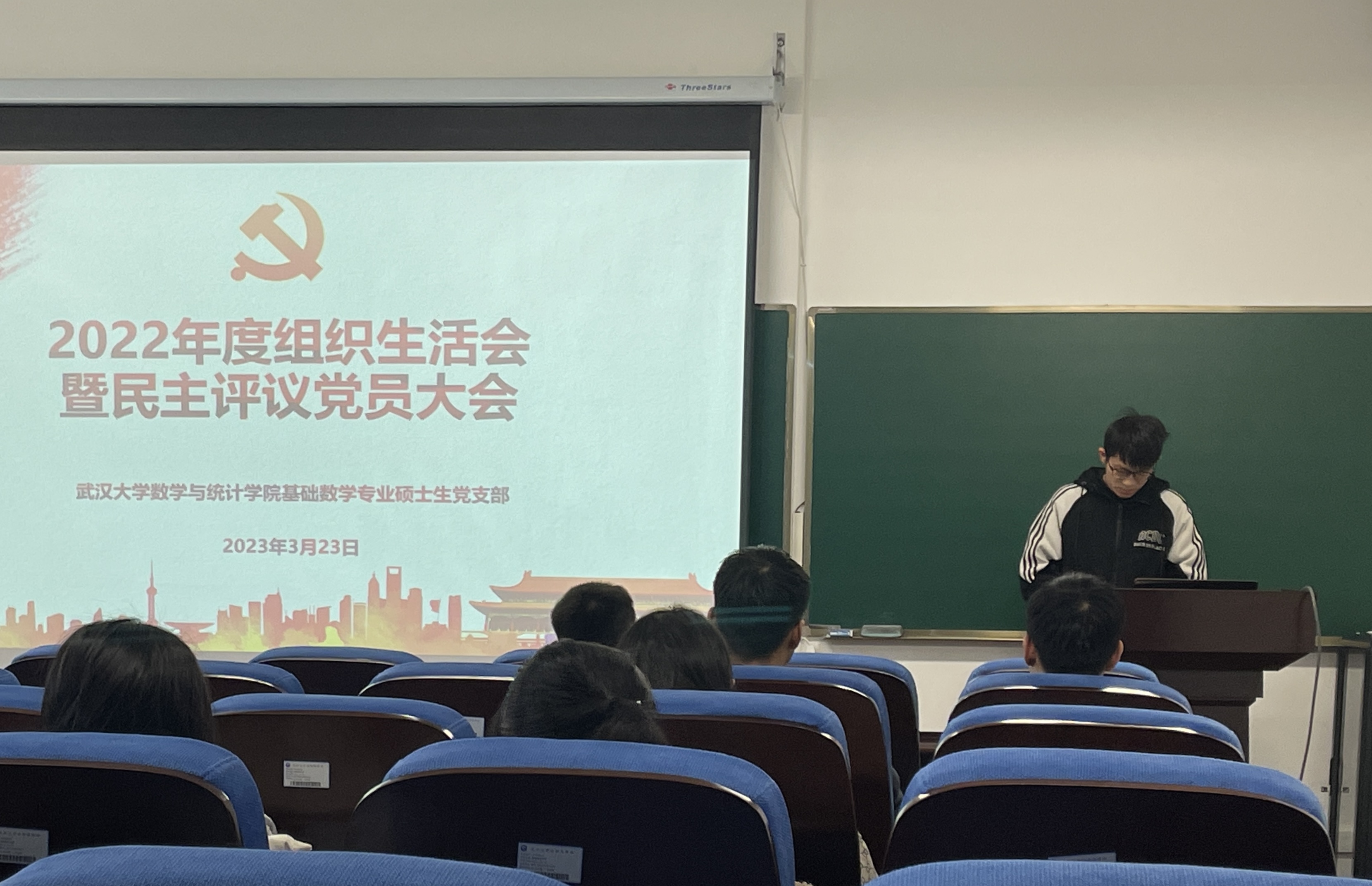 基础数学专业硕士生党支部召开2022年度组织生活会暨民主评议党员大会。院党委委员王茂发老师出席会议,会议由党支部书记夏豪杰主持。