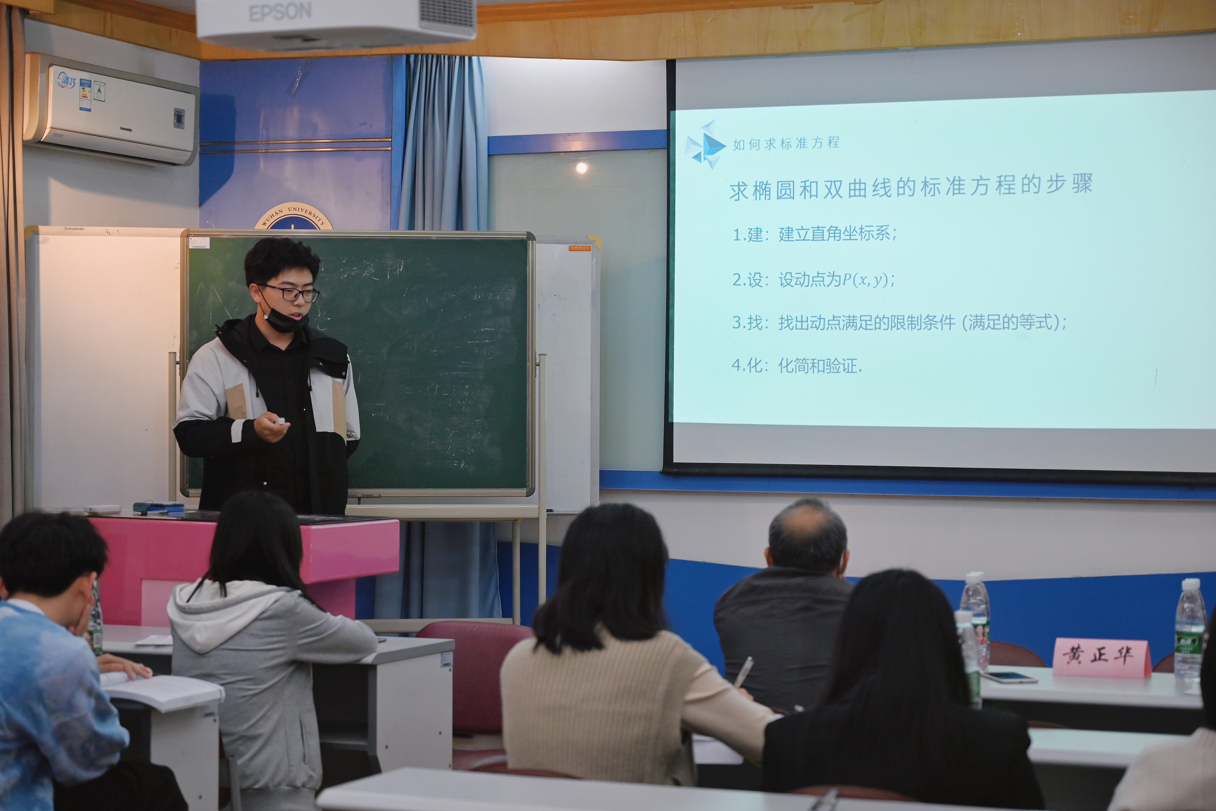 三尺讲台,传道授业,师者也。为加强爱情岛 研究生讲课的技能、提高爱情岛 研究生运用所学知识开展教育教学的能力,以及为未来可能走向教师岗位的同学们提供一个良好的锻炼机会,2021年11月5日晚6点,爱情岛 第十六届“珞樱之声”研究生讲课比赛在数院二楼报告厅举办。爱情岛 贺振亚老师和黄正华老师担任本次比赛的评委,牛靖仁同学担任本次比赛的主持人。