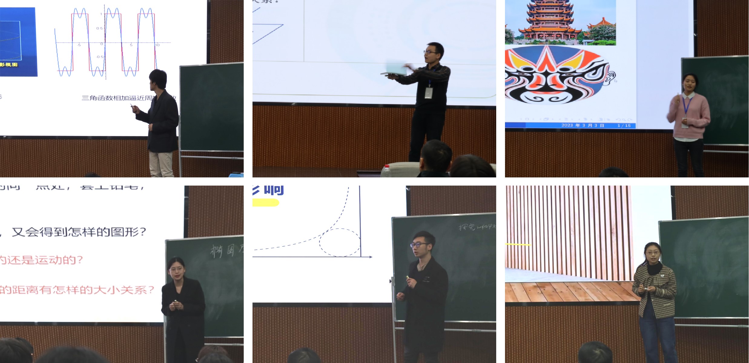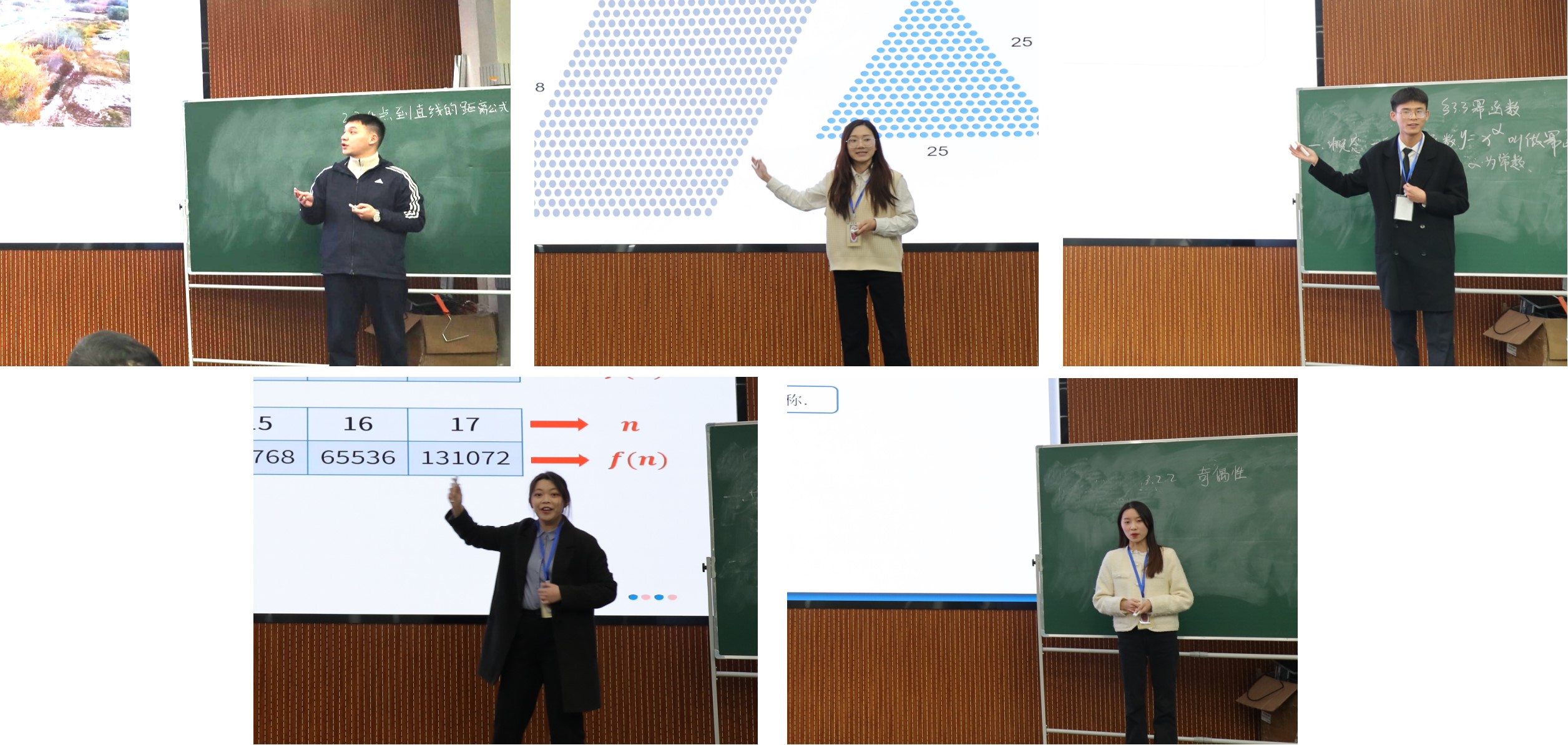 随后,选手们按照抽签顺序依次进行了精彩地讲授。授课内容涵盖了中学数学的不同板块。参赛选手授课思路清晰,课件图文并茂,课堂导入形式丰富,板书整洁清晰,讲解生动有趣。