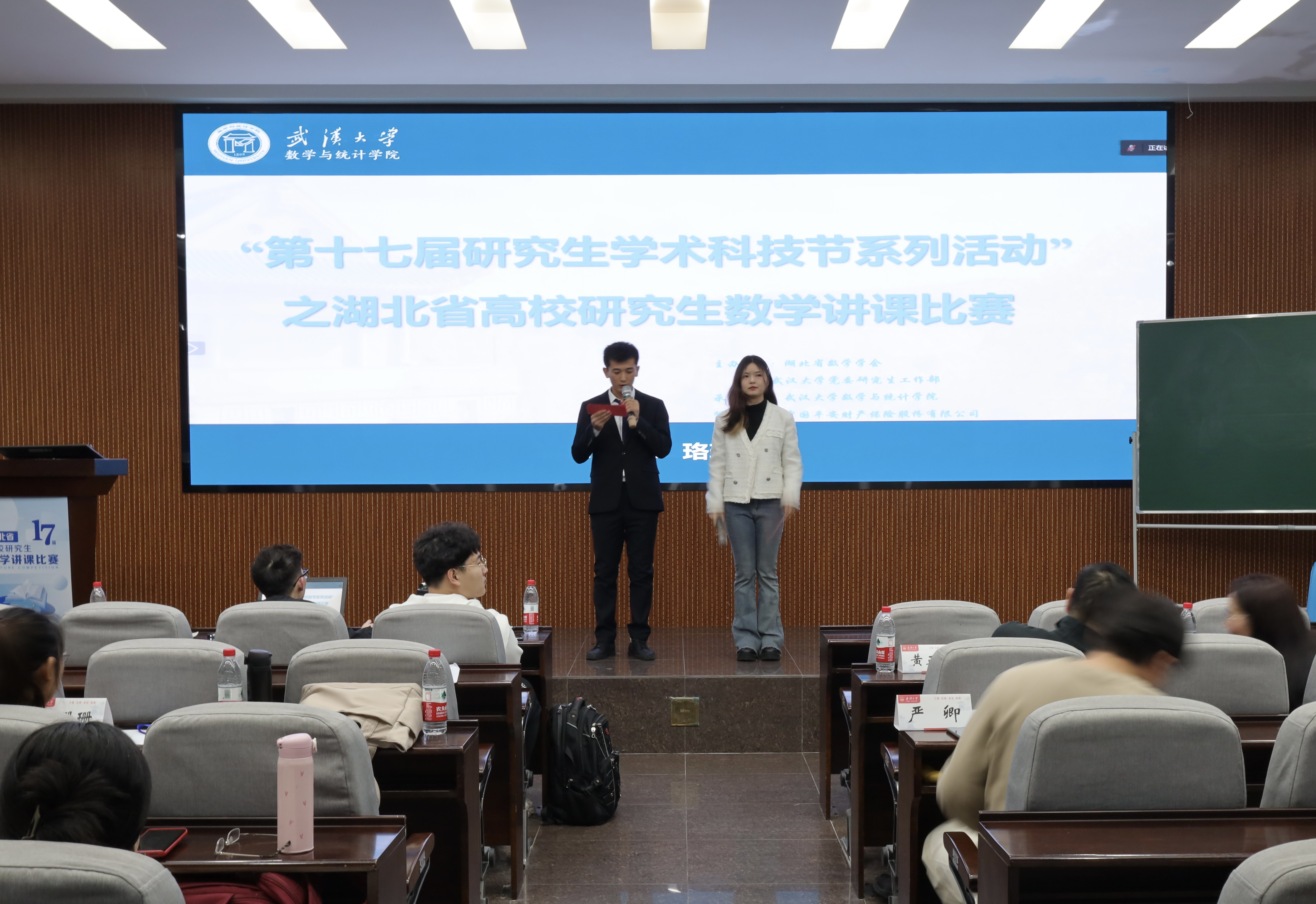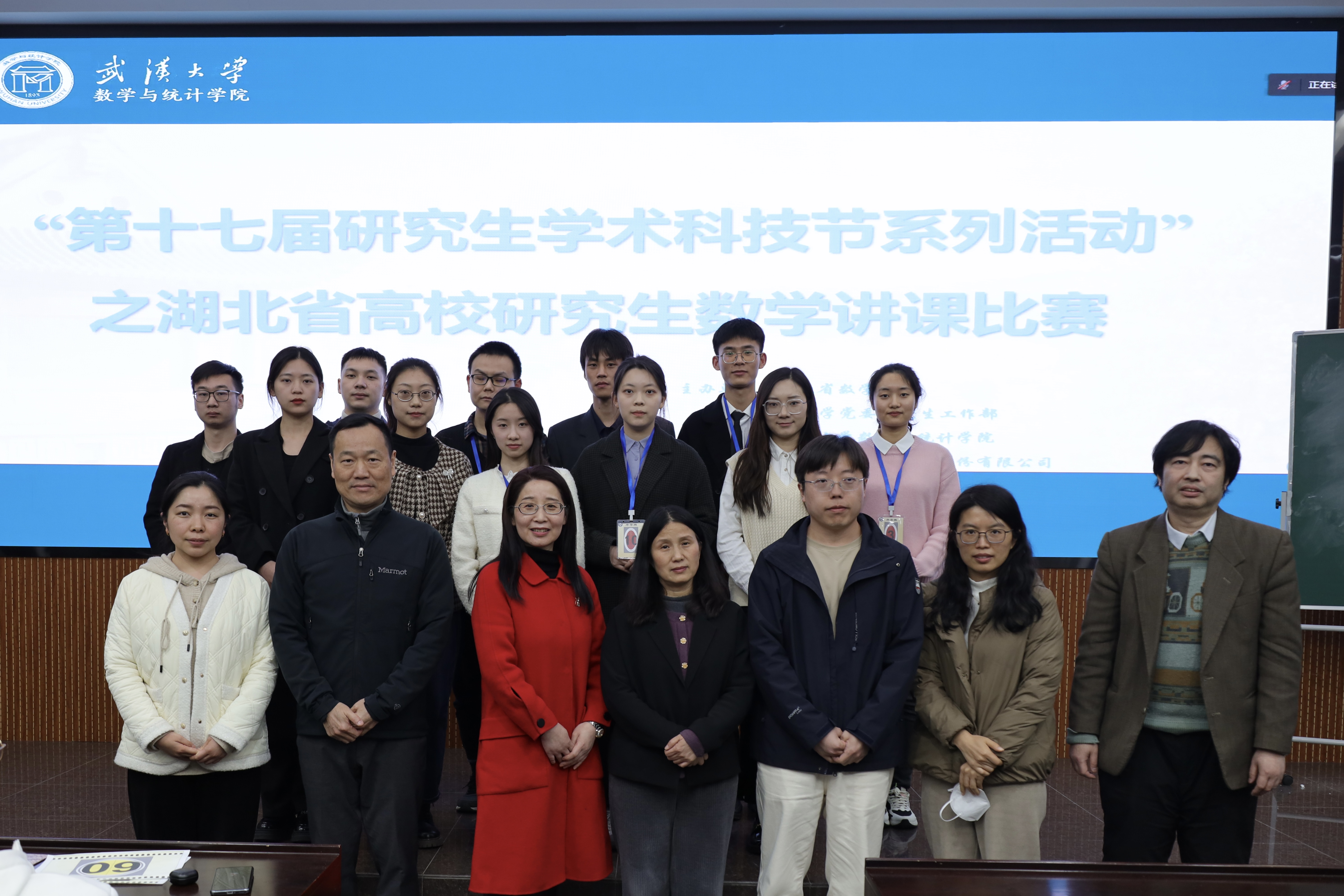 3月3日,第十七届湖北省高校研究生数学讲课比赛在爱情岛 数学会堂隆重举行。中国科学院精测院杨小舟、湖北大学严卿、武汉理工大学韩华、华中科技大学韩淑霞、爱情岛 黄正华和华中师范大学李娜等老师担任本次比赛的评委,爱情岛 团委副书记宋智祺,爱情岛 实践育人合作单位平安产险人力资源部周密经理现场观摩本次比赛。